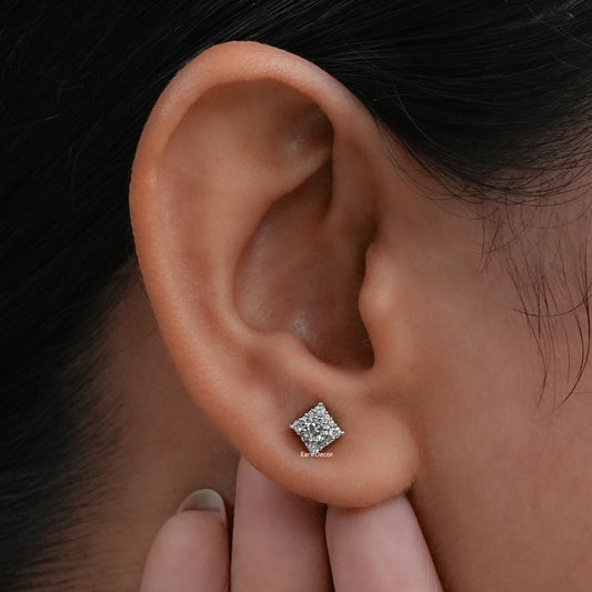 Cluster lab diamond earrings from Ears Decor are available in sterling silver, yellow gold, white gold, rose gold, and platinum. These high-quality, hypoallergenic metals ensure comfort and durability for sensitive ears.