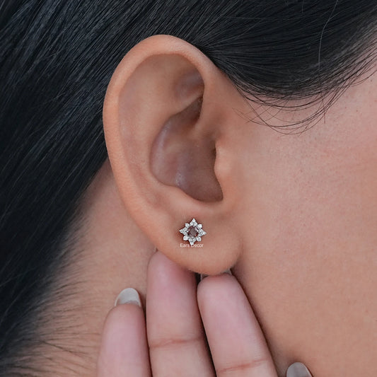 Garnet Birthstone Earrings from Ears Decor feature lab-grown semi-precious garnet gemstones, known for their deep red colour and symbolic connection to January birthdays.
