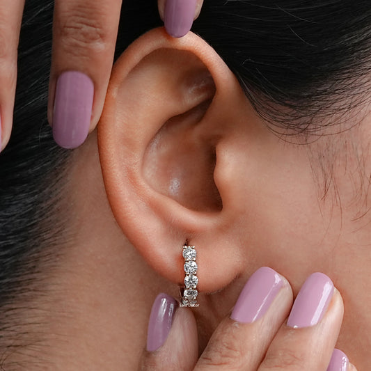 Lab diamond hoop earrings from Ears Decor are available in high-quality metals such as sterling silver, yellow gold, white gold, rose gold, and platinum, ensuring durability and comfort for sensitive ears.