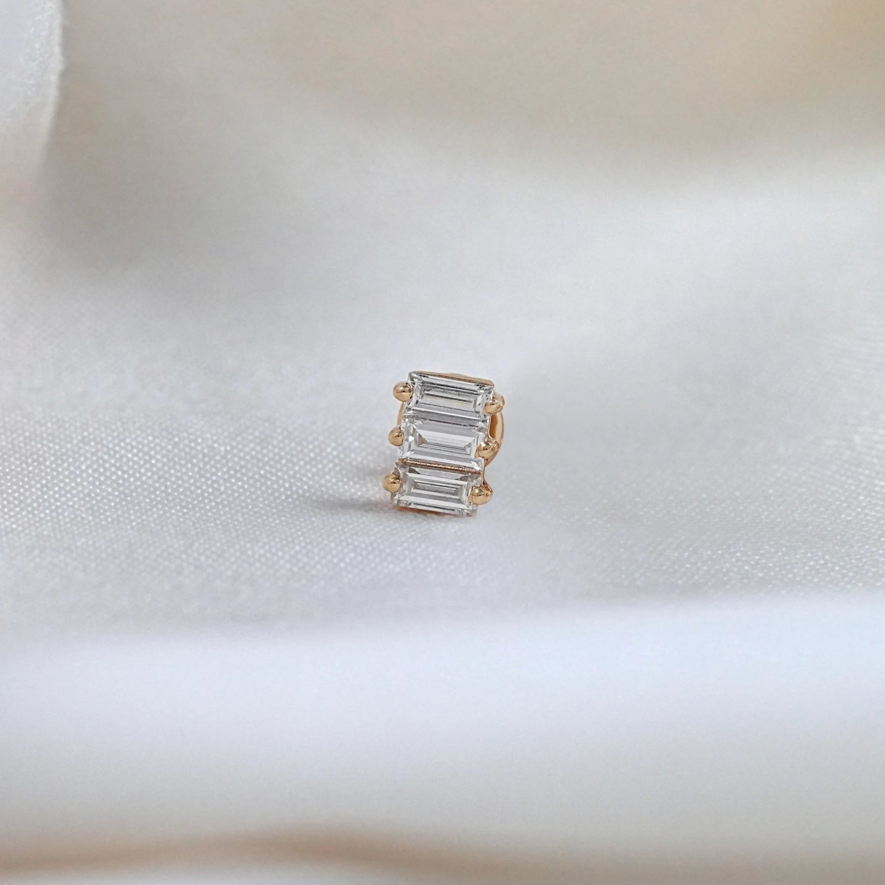 This men's stud features a Baguette-Cut lab diamond with EF color and VS clarity, set in a sleek bar setting. A perfect blend of modern style and timeless elegance.