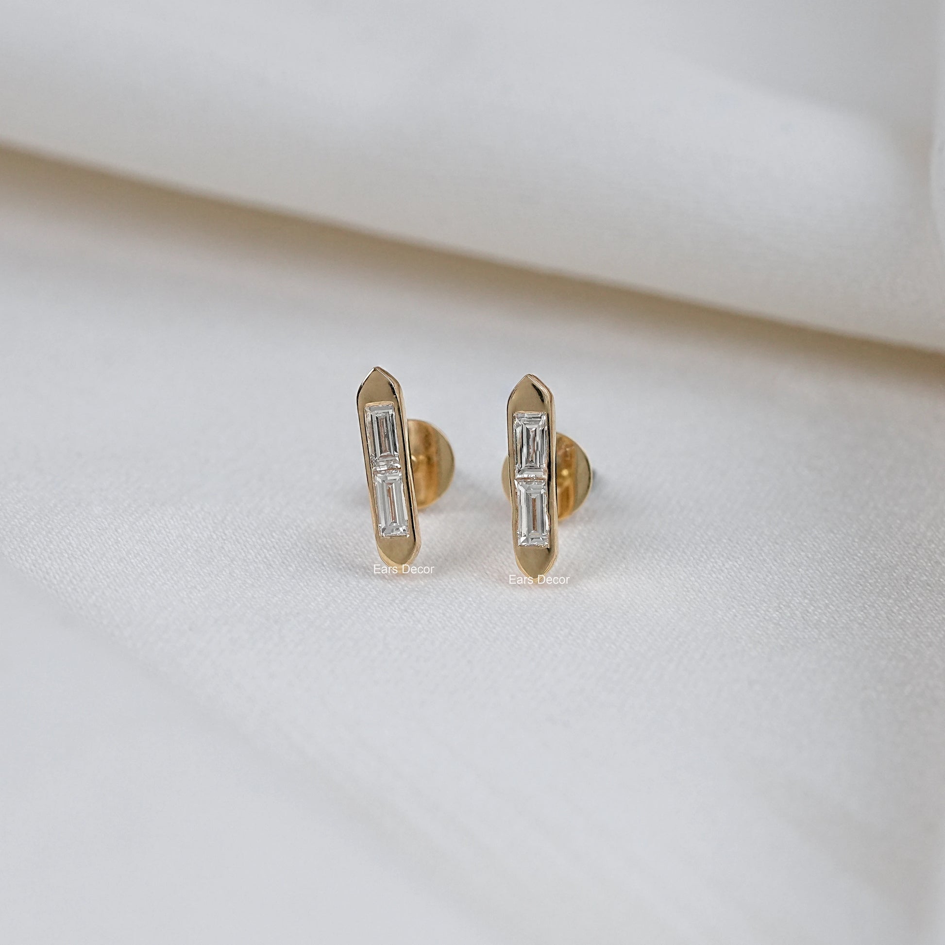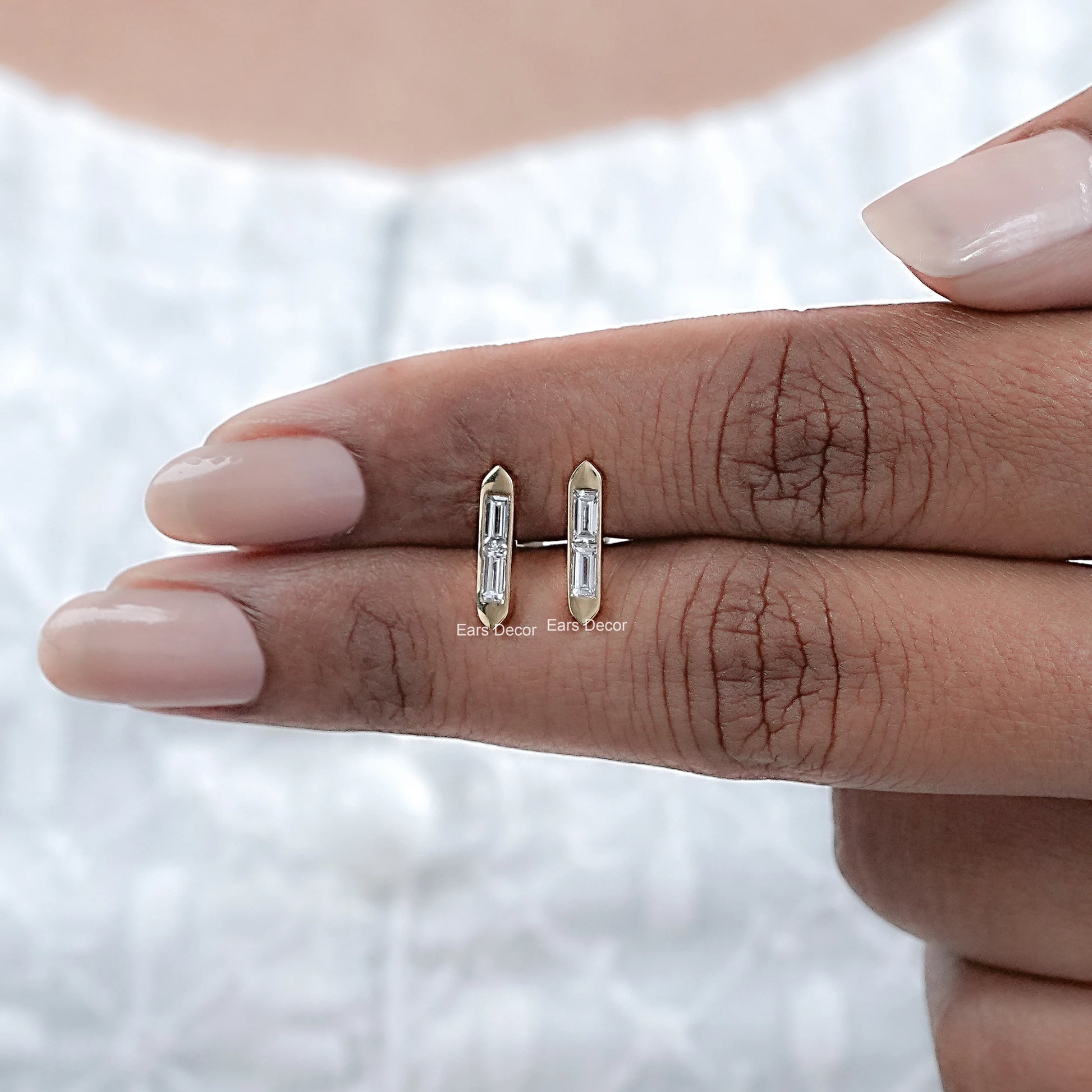 Sleek Baguette Lab Diamond Bar Set Stud Earrings, featuring clean lines and modern sparkle—perfect for a refined, contemporary style.