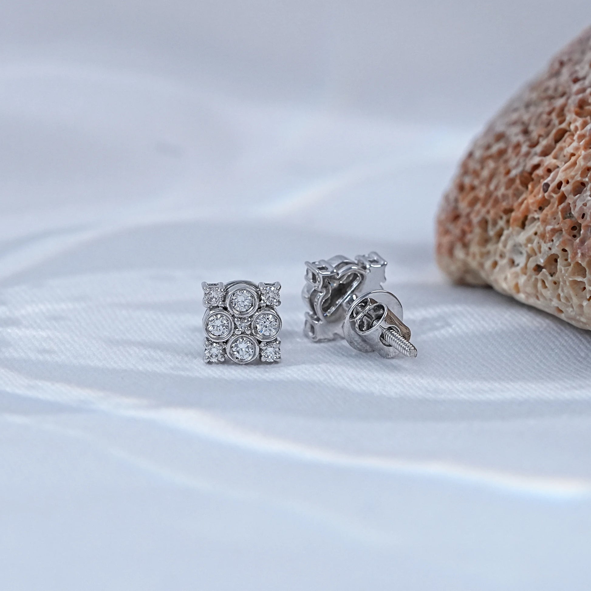 These stunning cluster diamond stud earrings, crafted in white gold with a chic bezel setting. A perfect for both everyday wear and special occasions.