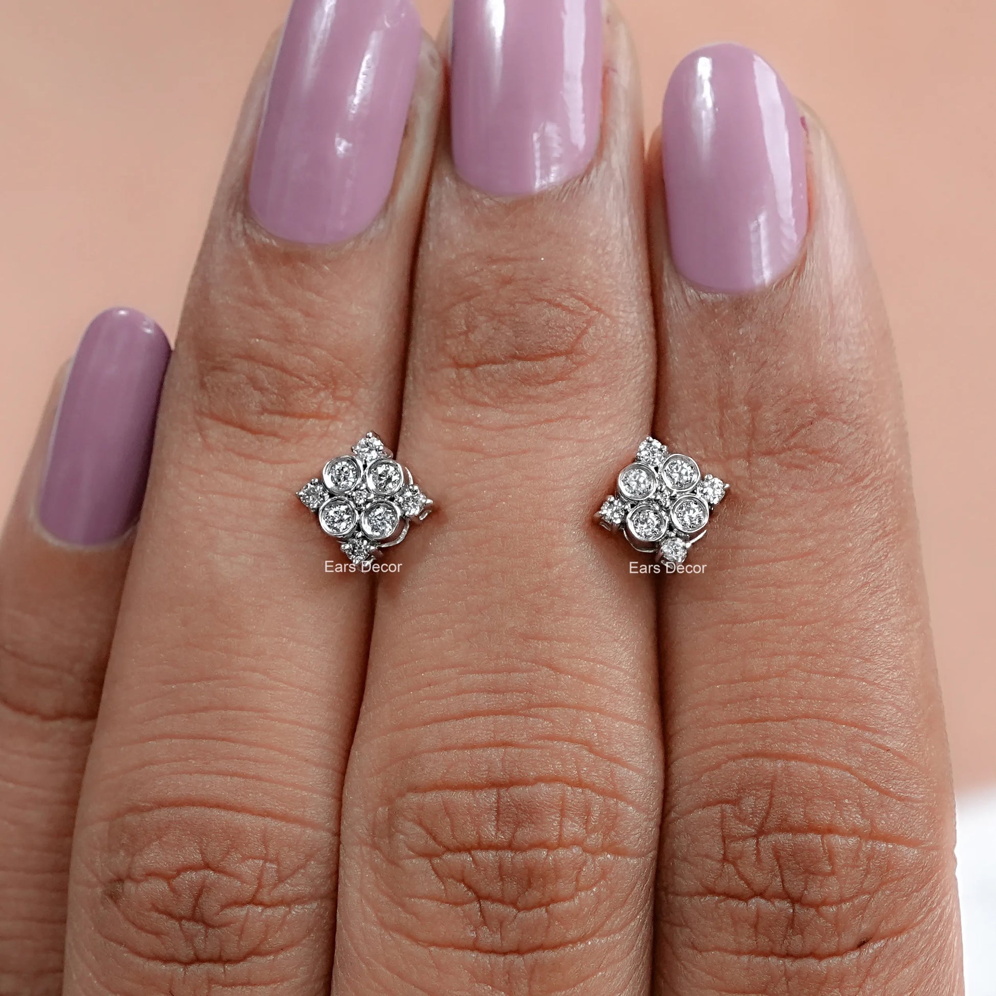Bezel Set Round Cut Lab Diamond Cluster Stud Earrings