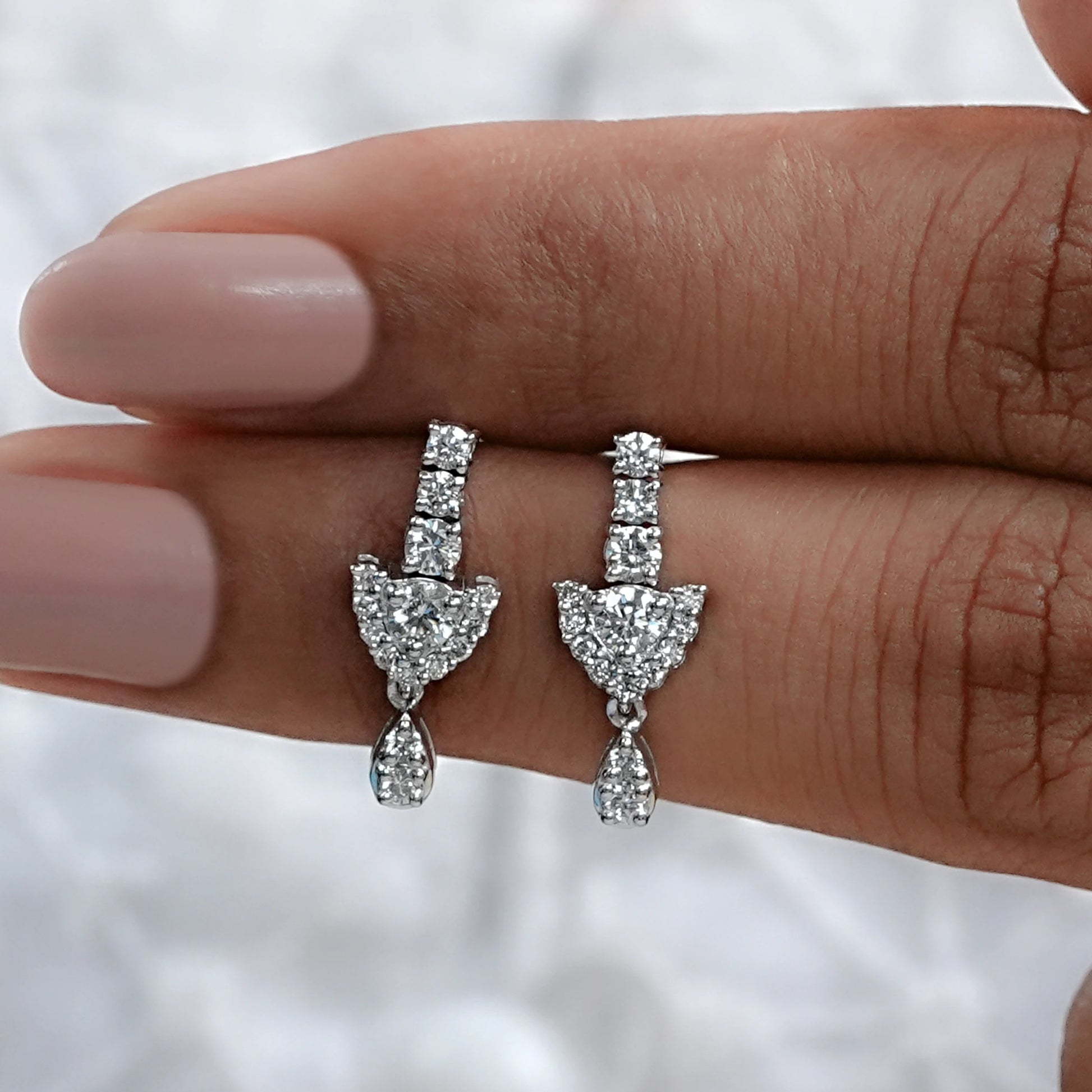 Celebrate your love with Earth-Mined Brilliant Cut Round Diamond Dangle Drop Earrings. Featuring exquisite round diamonds, these earrings offer a timeless sparkle, perfect for any occasion.