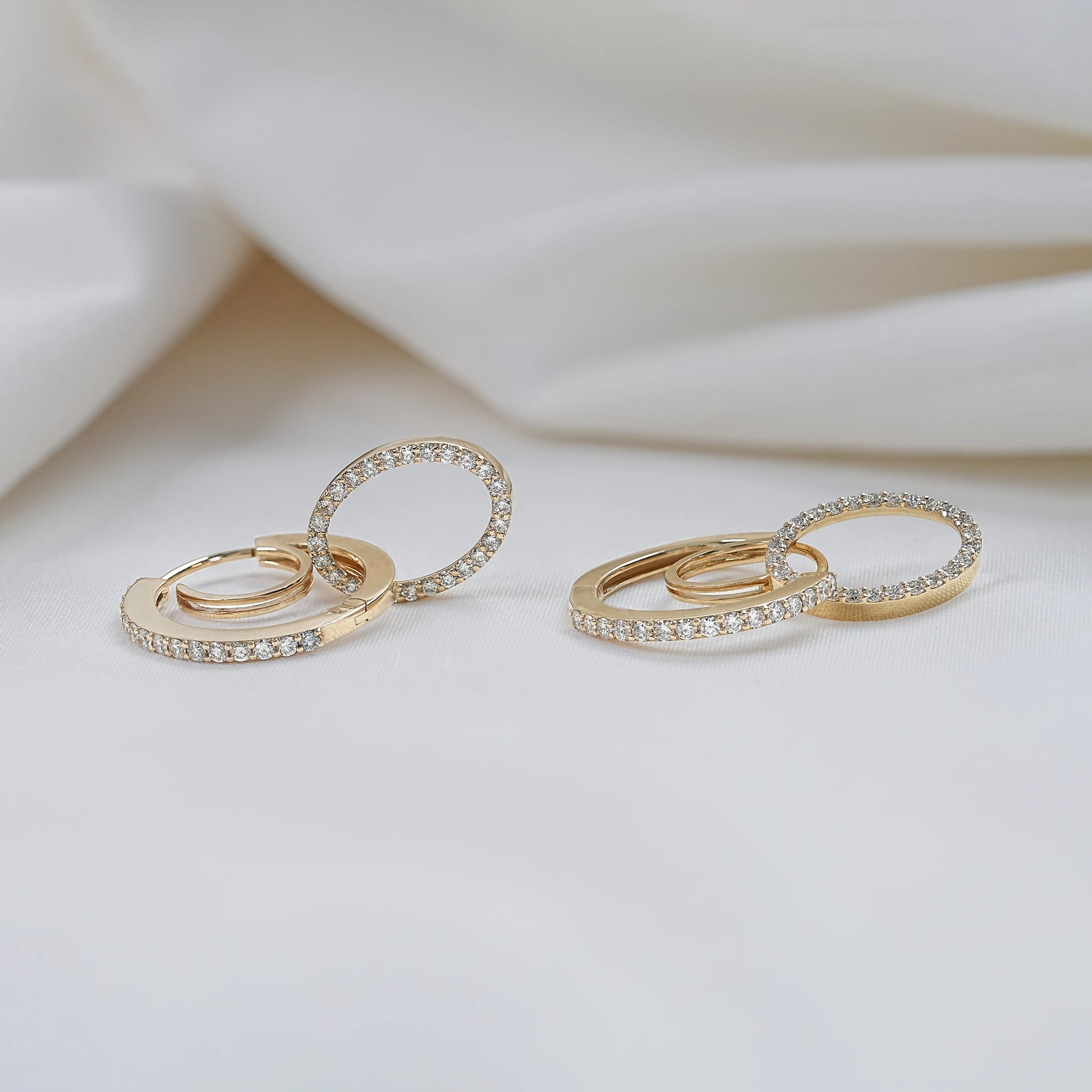 Double Link Open Circle Lab Diamond Hoop Earrings, featuring interlocking round hoops with lab-grown diamonds for a modern, elegant touch.