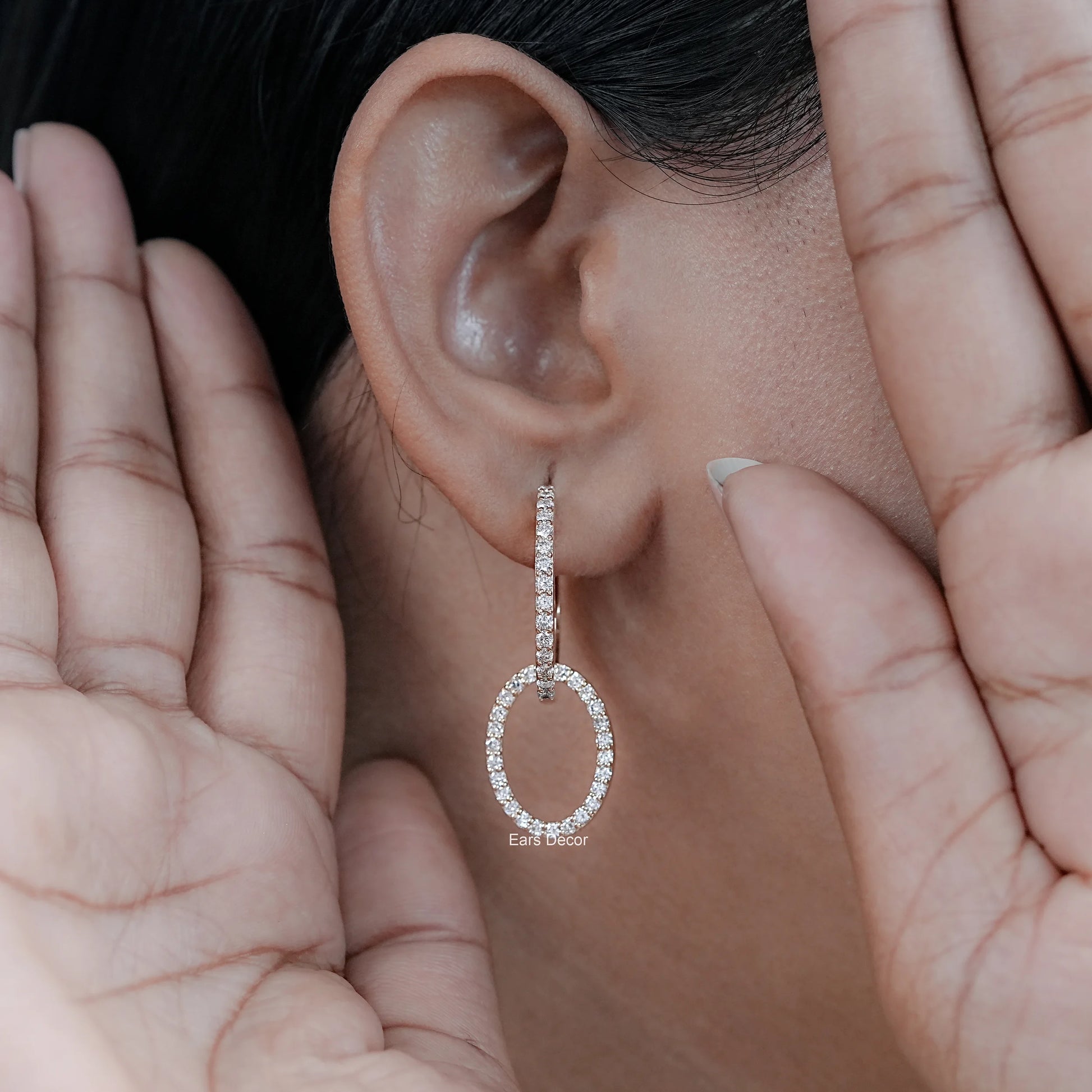 Double Link Open Circle Round Lab Diamond Hoop Earrings