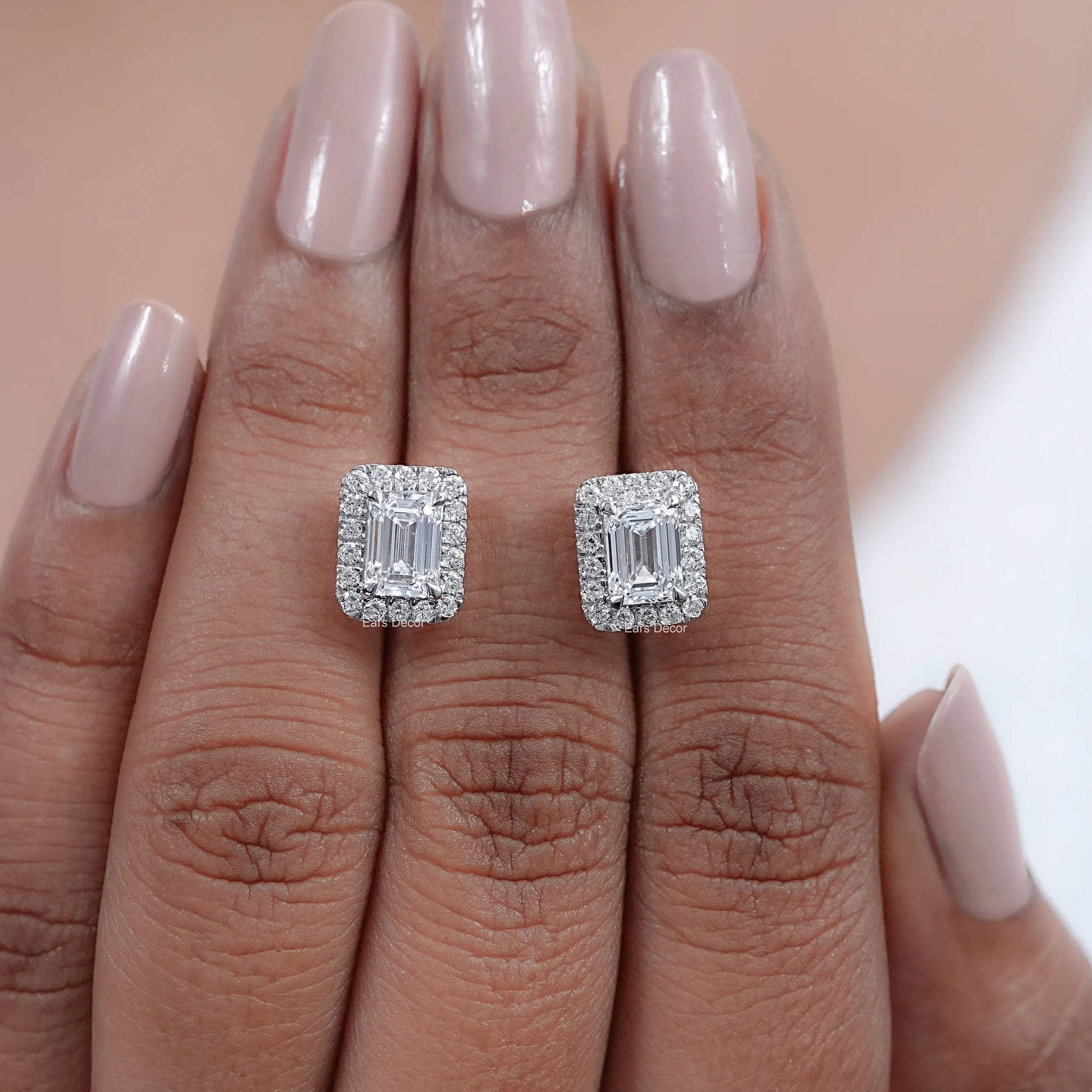 Emerald Cut Lab Diamond Halo Stud Earrings