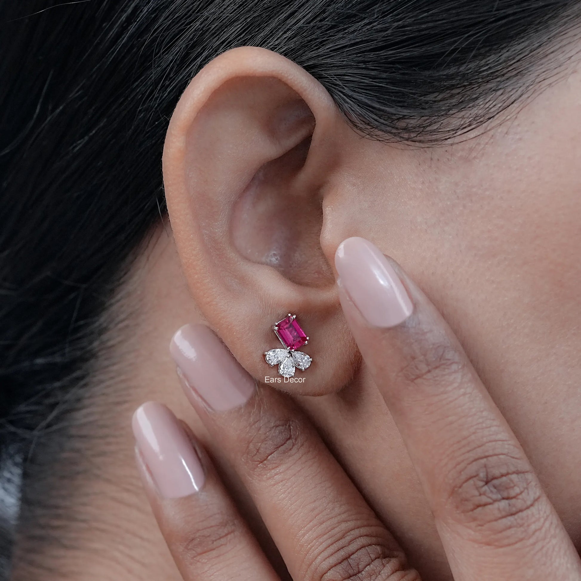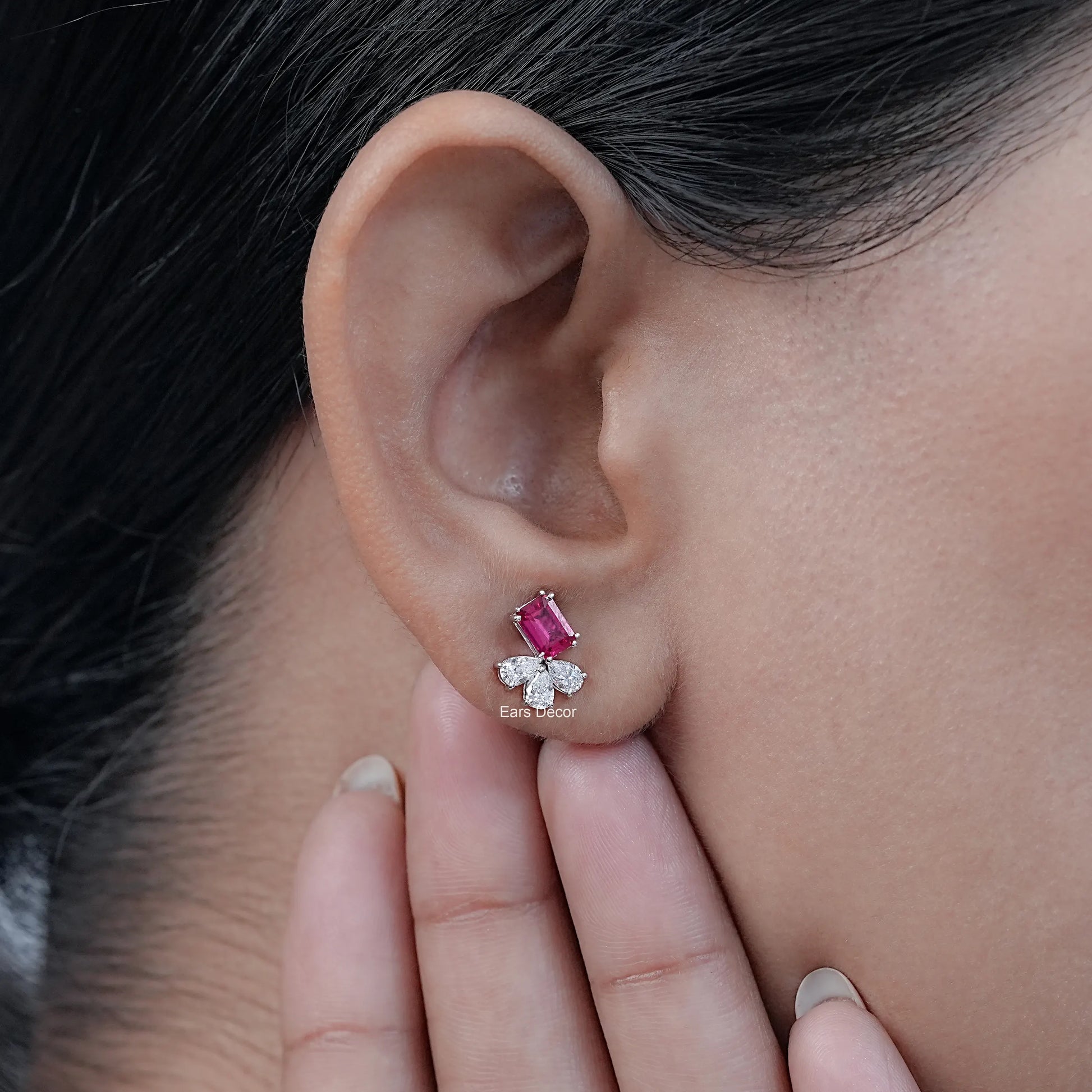 Ruby Emerald And Pear Lab Diamond Stud Earrings