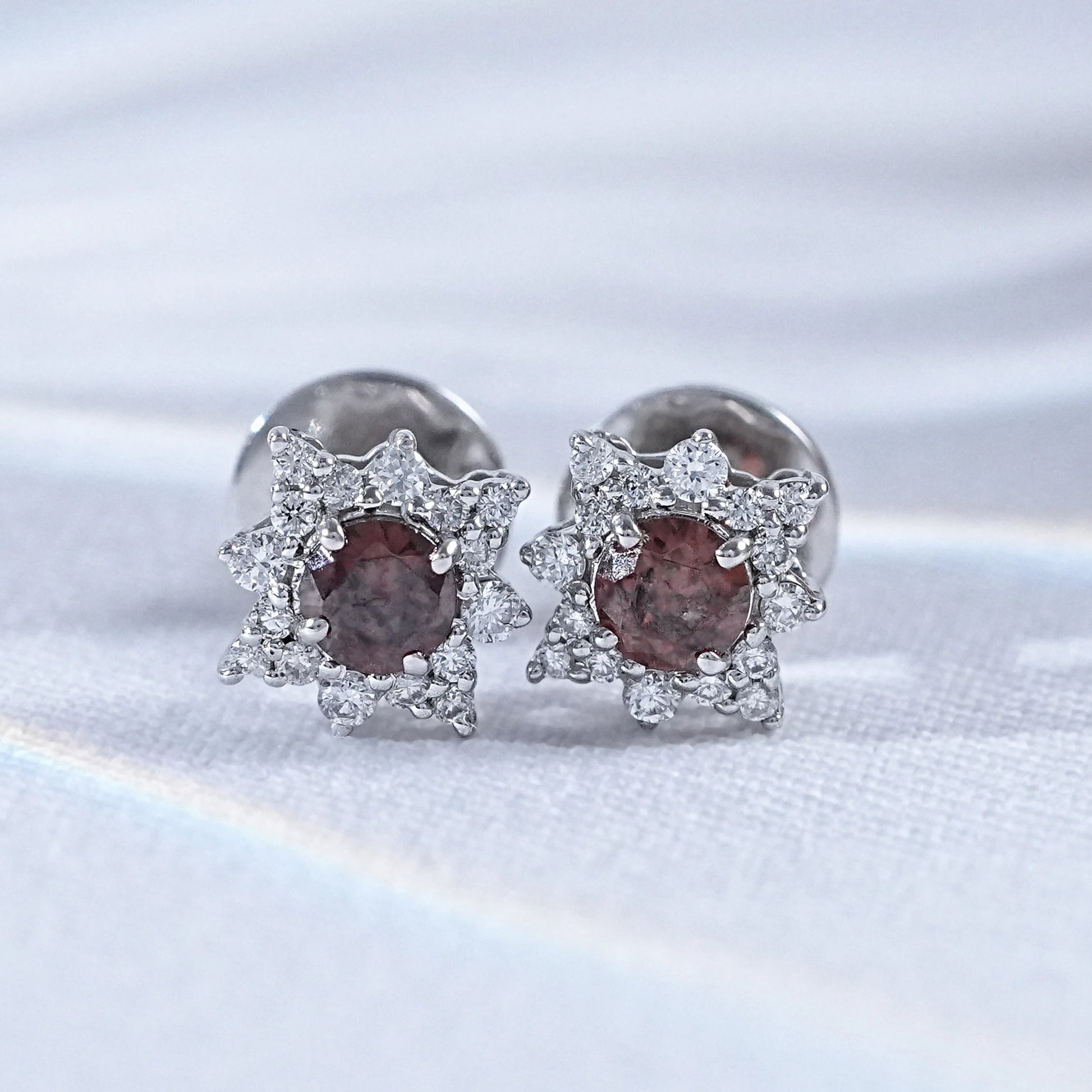 Garnet Gemstone And Diamond Cluster Stud Earrings
