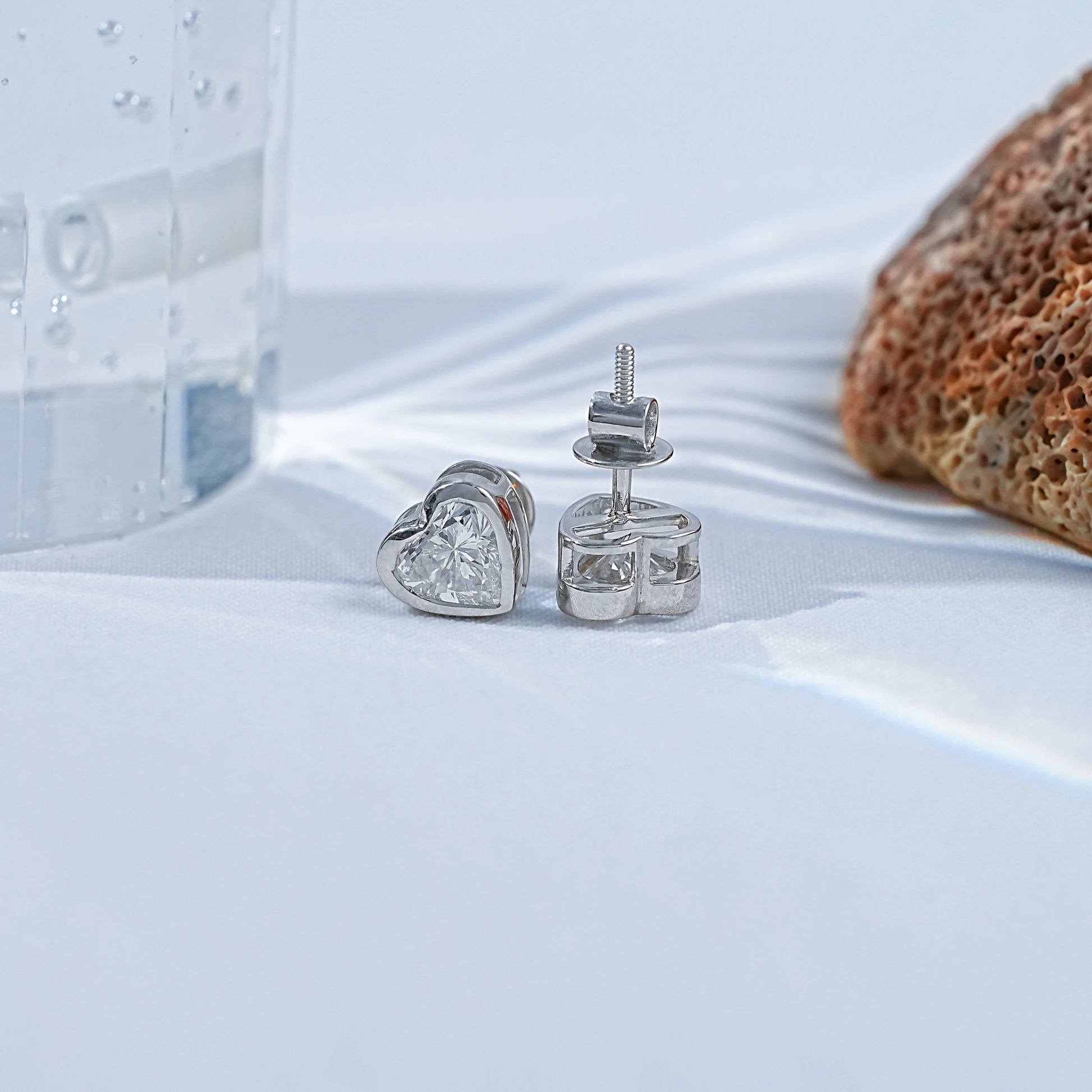 Lab Grown Heart Cut Diamond Bezel Set Earrings