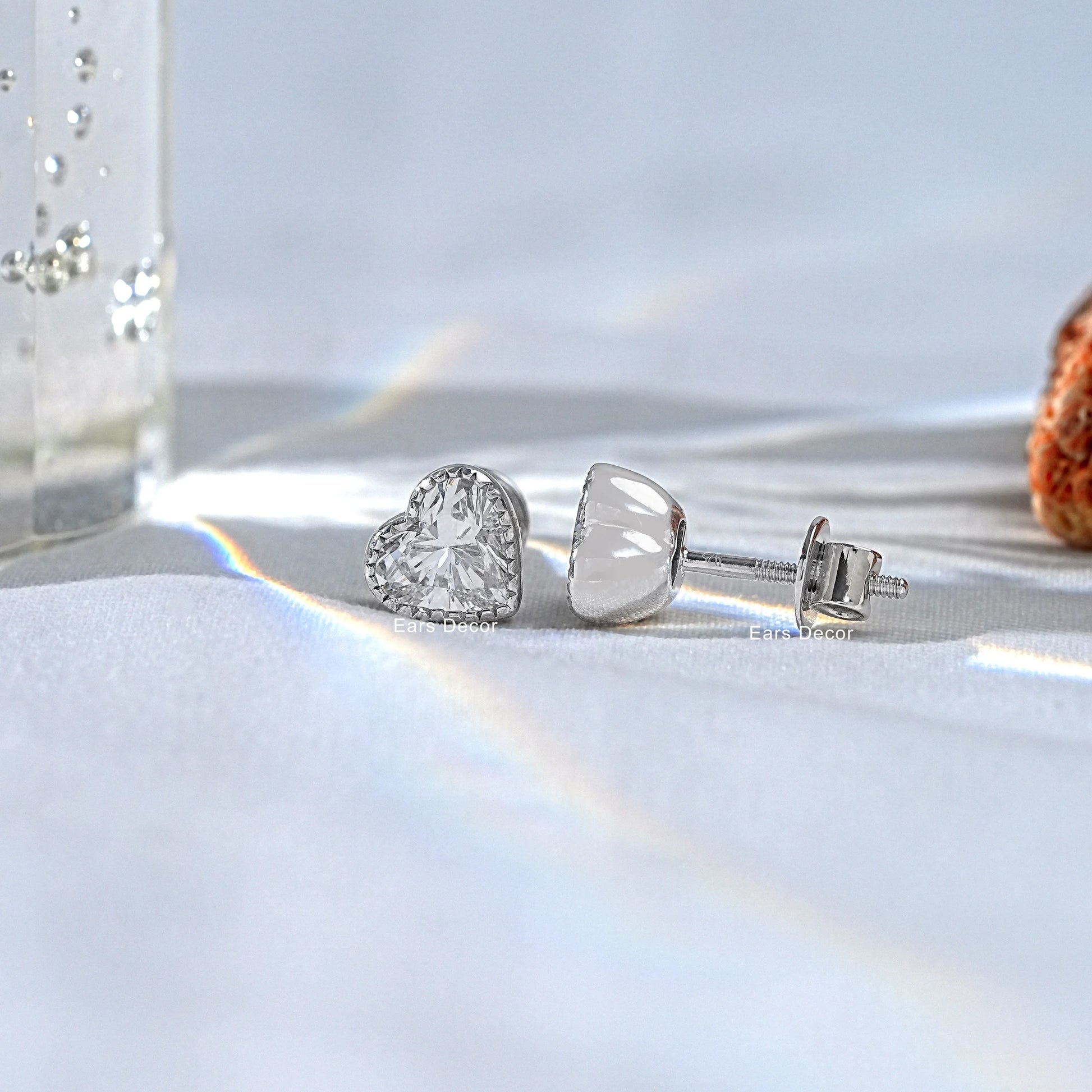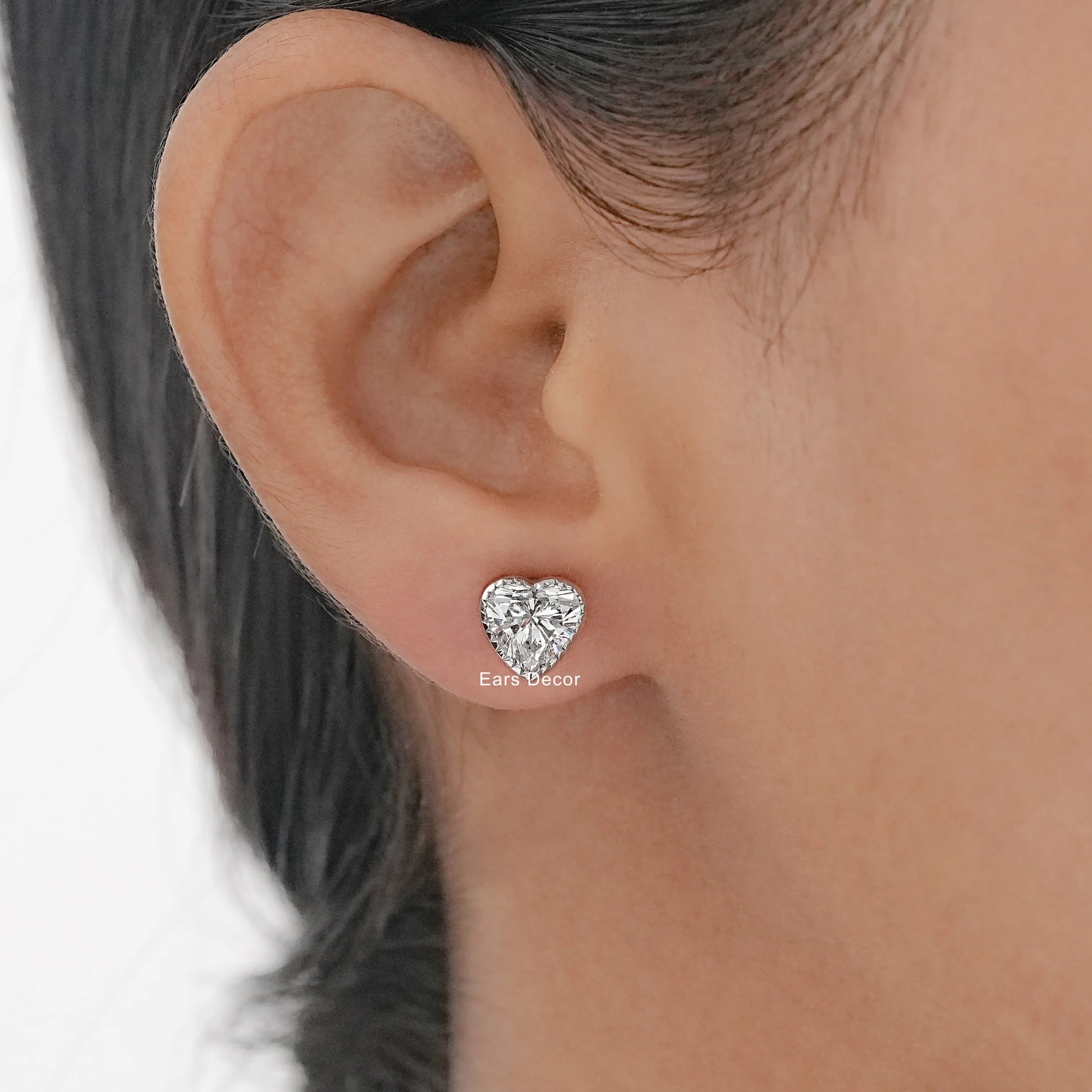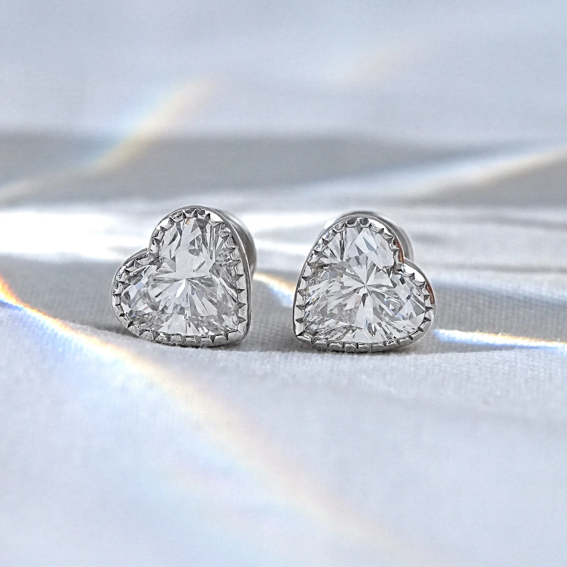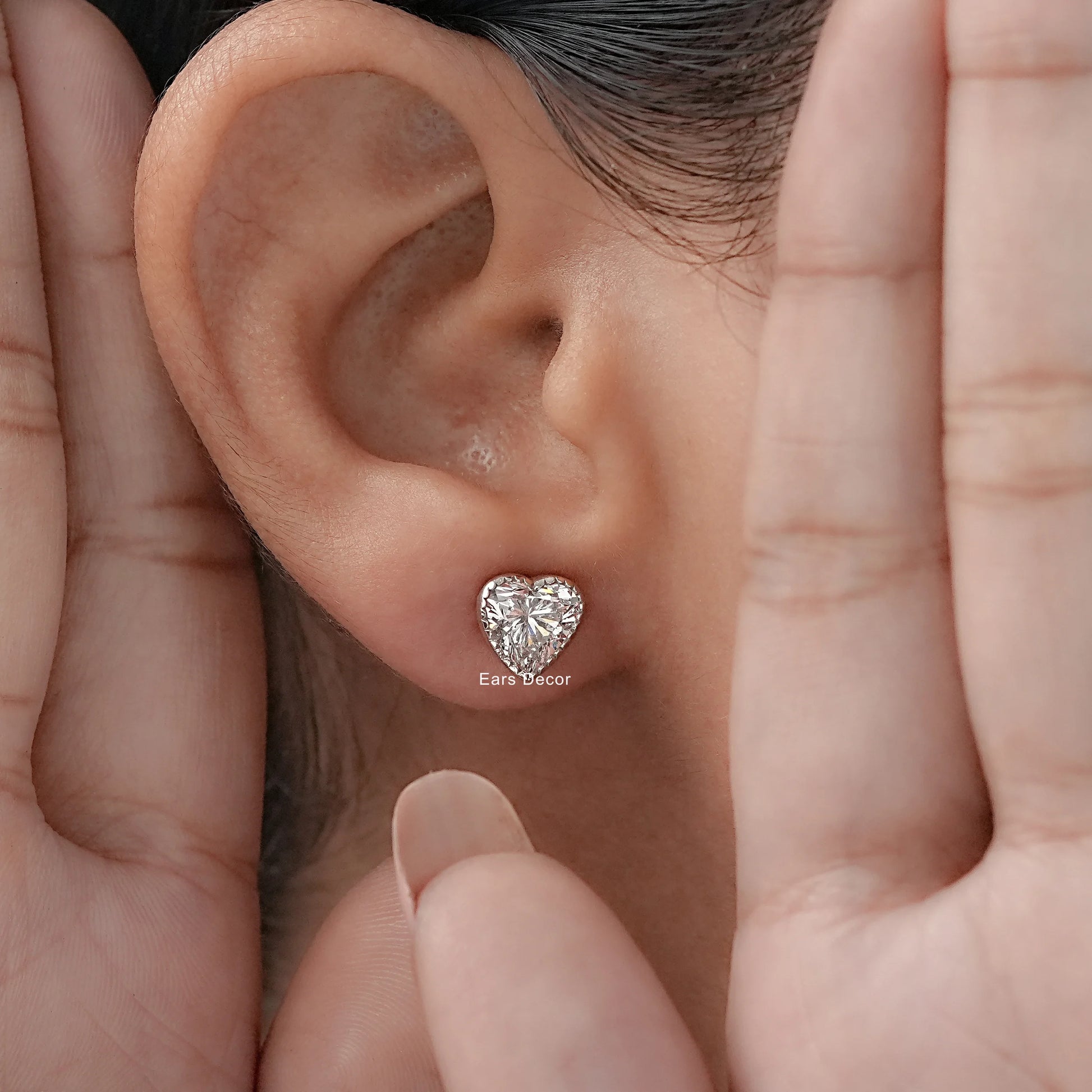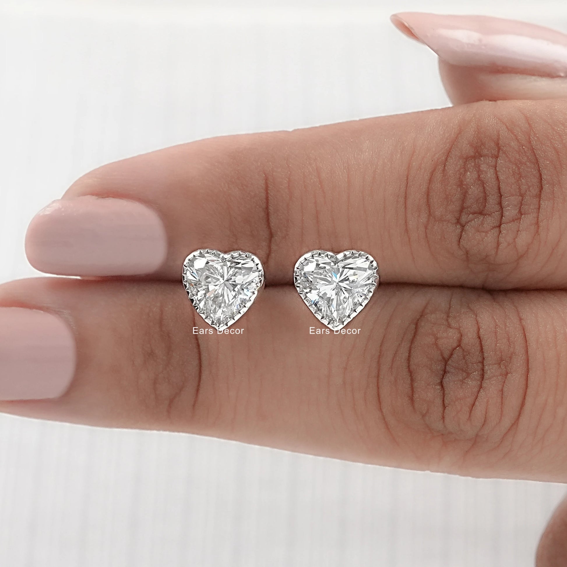 Romantic Heart Cut Lab Diamond Stud Earrings adorned with delicate milgrain detailing, blending timeless elegance with a touch of vintage-inspired charm.