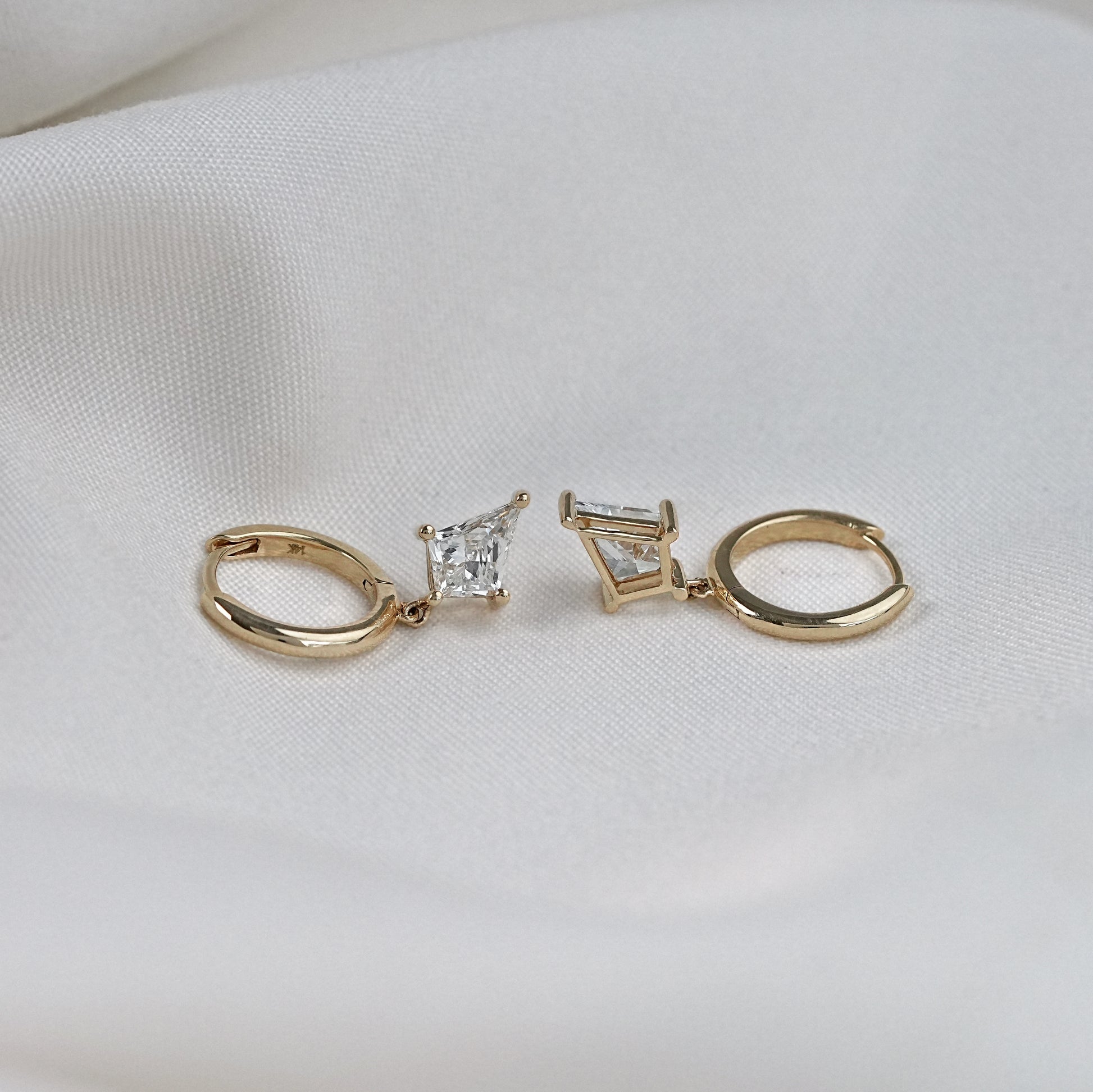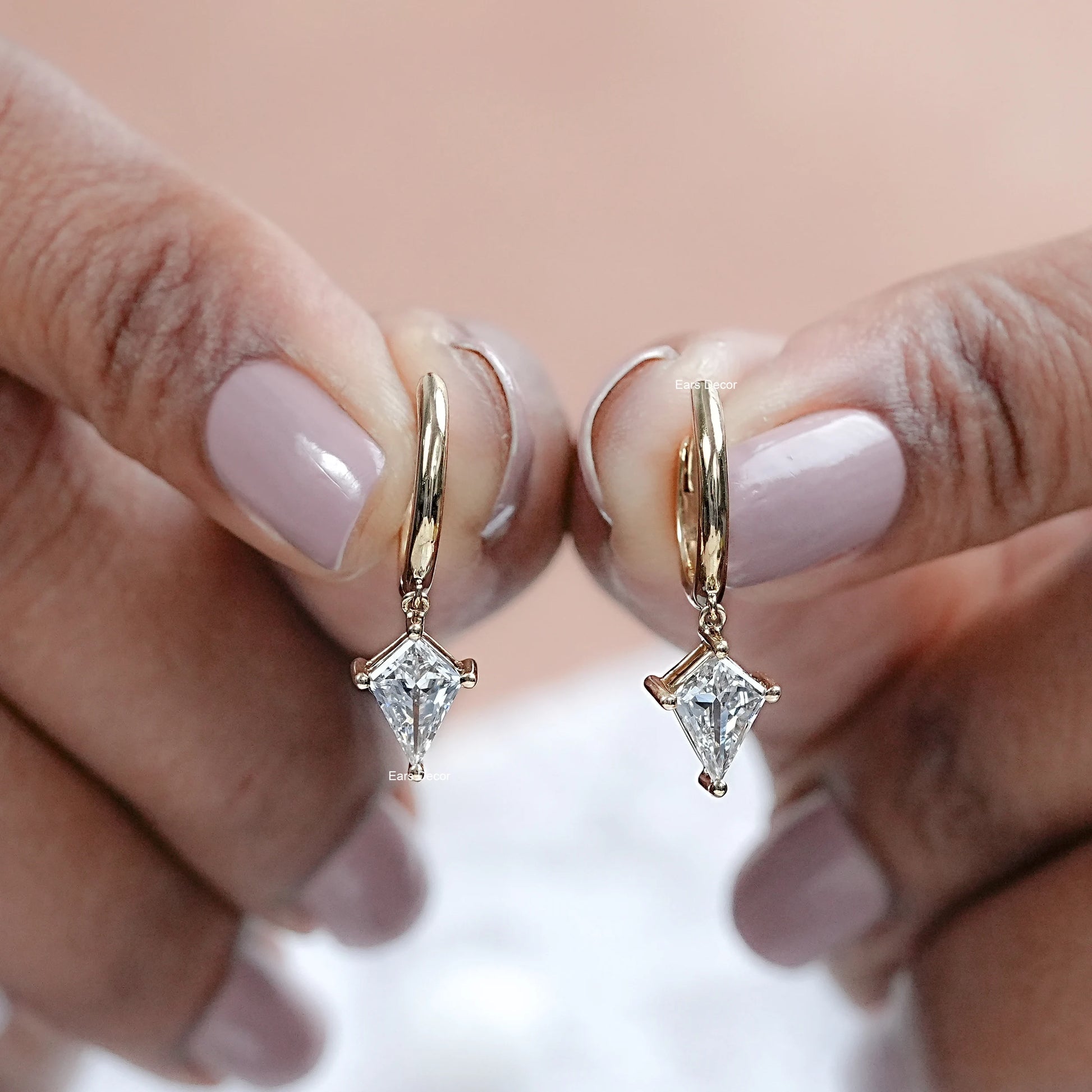 Kite Lab Diamond Drop Hoop Earrings, featuring brilliant kite-shaped lab diamonds suspended from sleek hoops for a modern, elegant look.