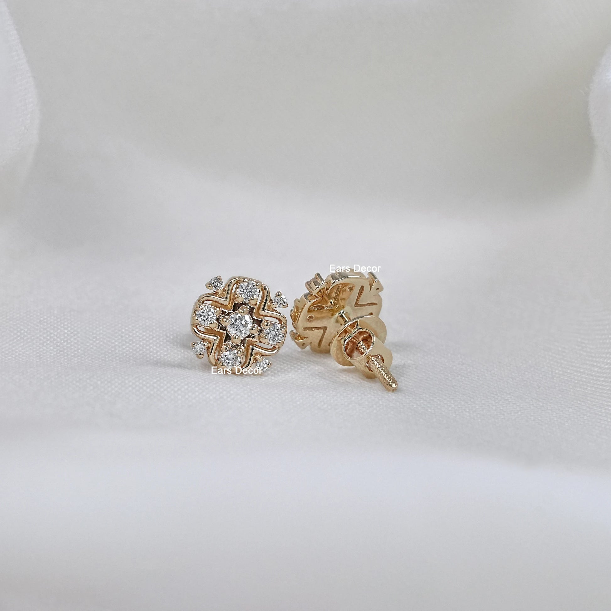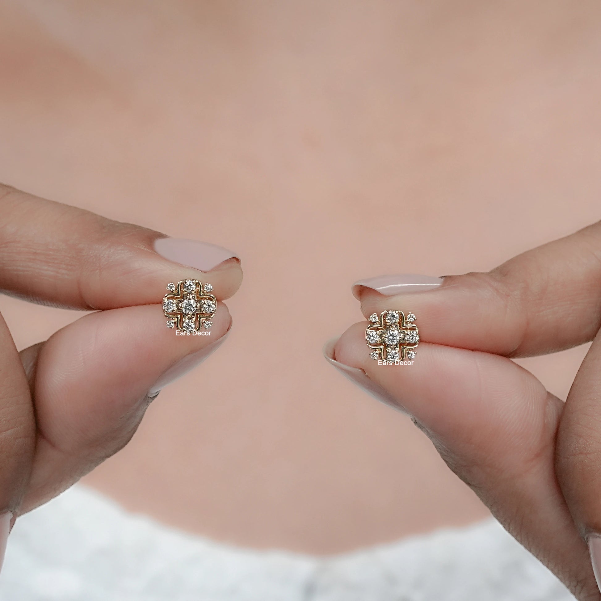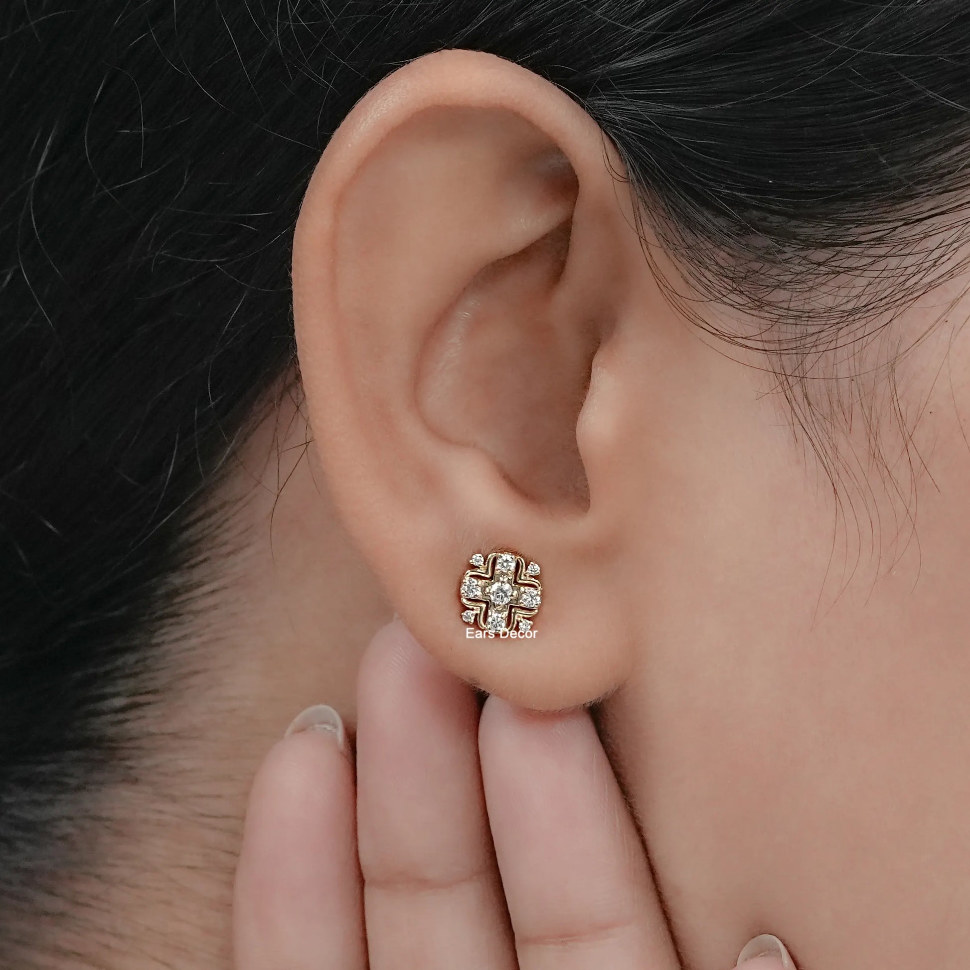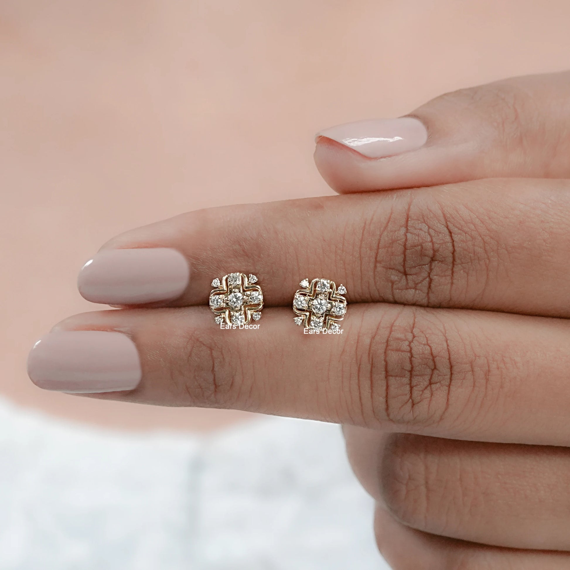 Stunning Lab Diamond Round Cut Cluster Earrings, showcasing a brilliant arrangement of diamonds for maximum sparkle and timeless elegance.