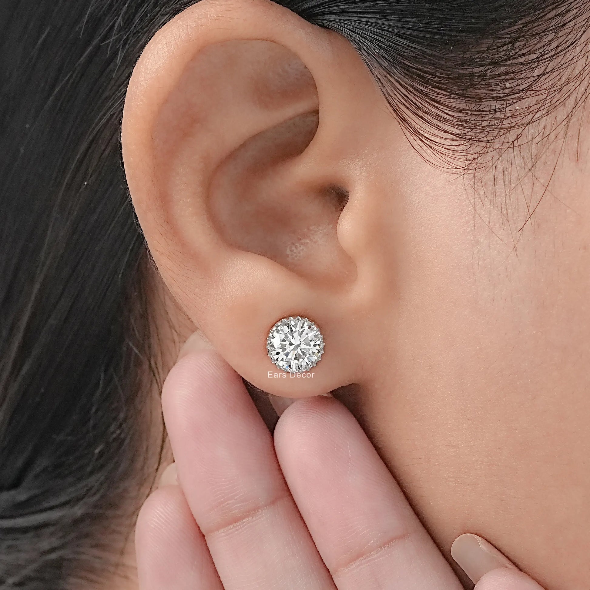 Elegant Round Lab Diamond Stud Earrings with delicate milgrain detailing, combining vintage charm with modern brilliance for a timeless look.