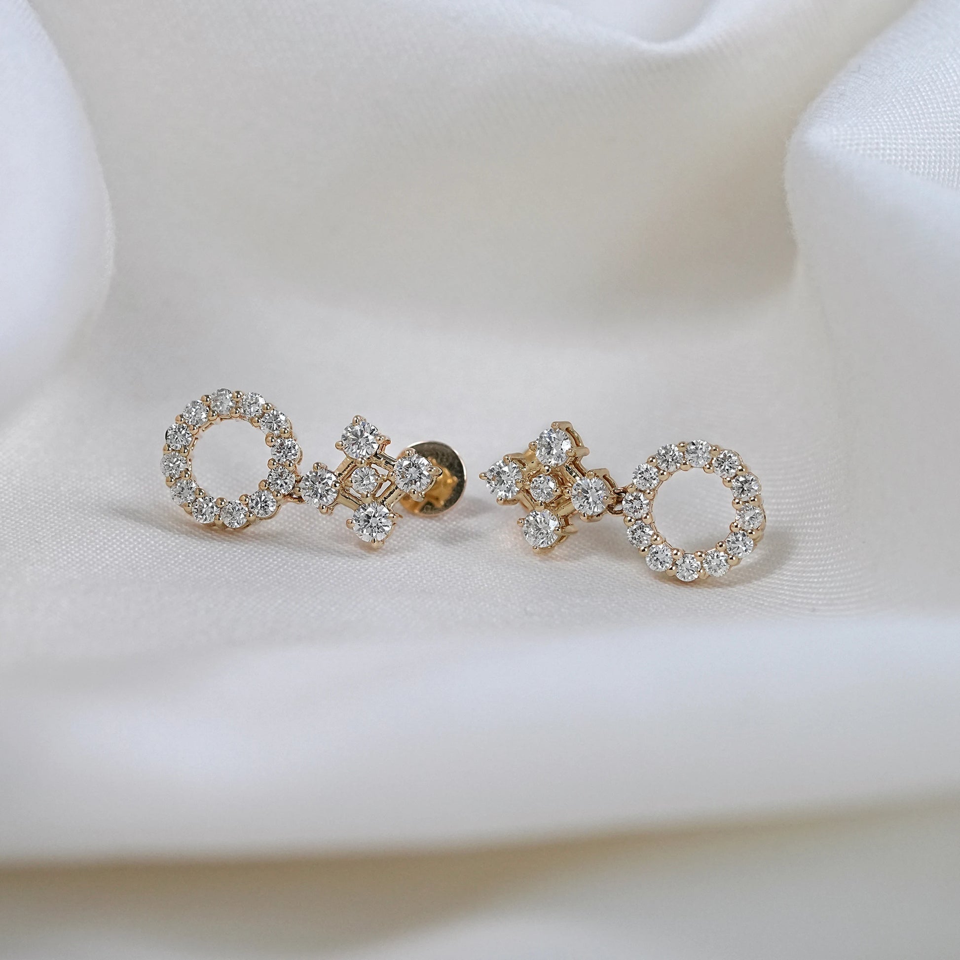 These elegant drop earrings showcase round diamonds in an open circle design, crafted in 14K yellow gold. Secure screw-back closure for added comfort.