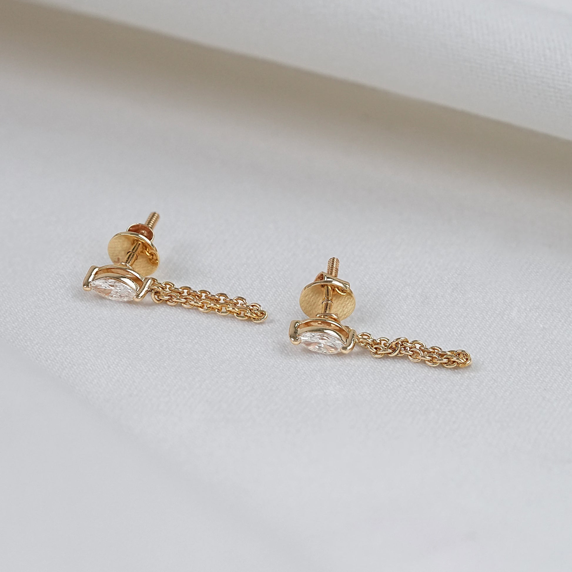 Marquise Lab Diamond Chain Dangle Earrings featuring brilliant marquise-cut diamonds gracefully suspended from sleek chain drops, offering elegant movement and timeless sparkle.