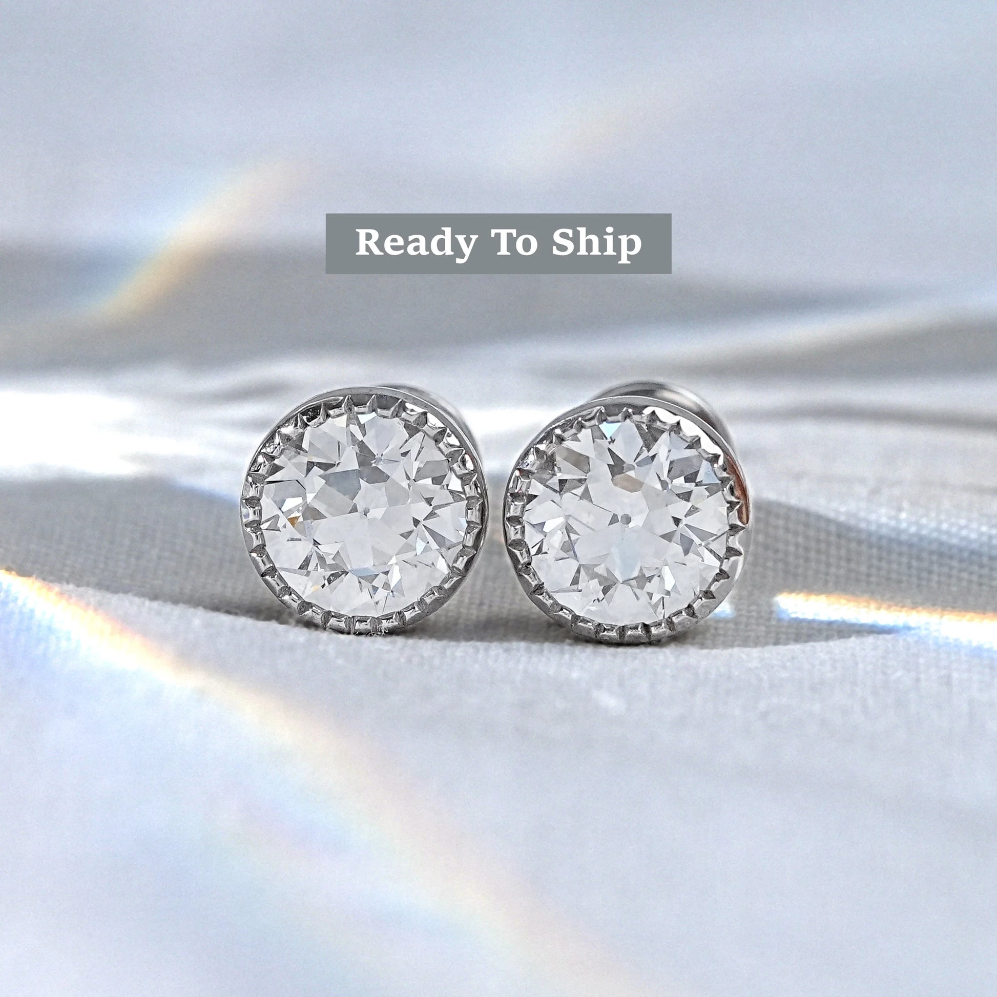 Elegant OEC Round Lab Diamond Stud Earrings with milgrain detailing, combining vintage charm and modern brilliance for a timeless look.