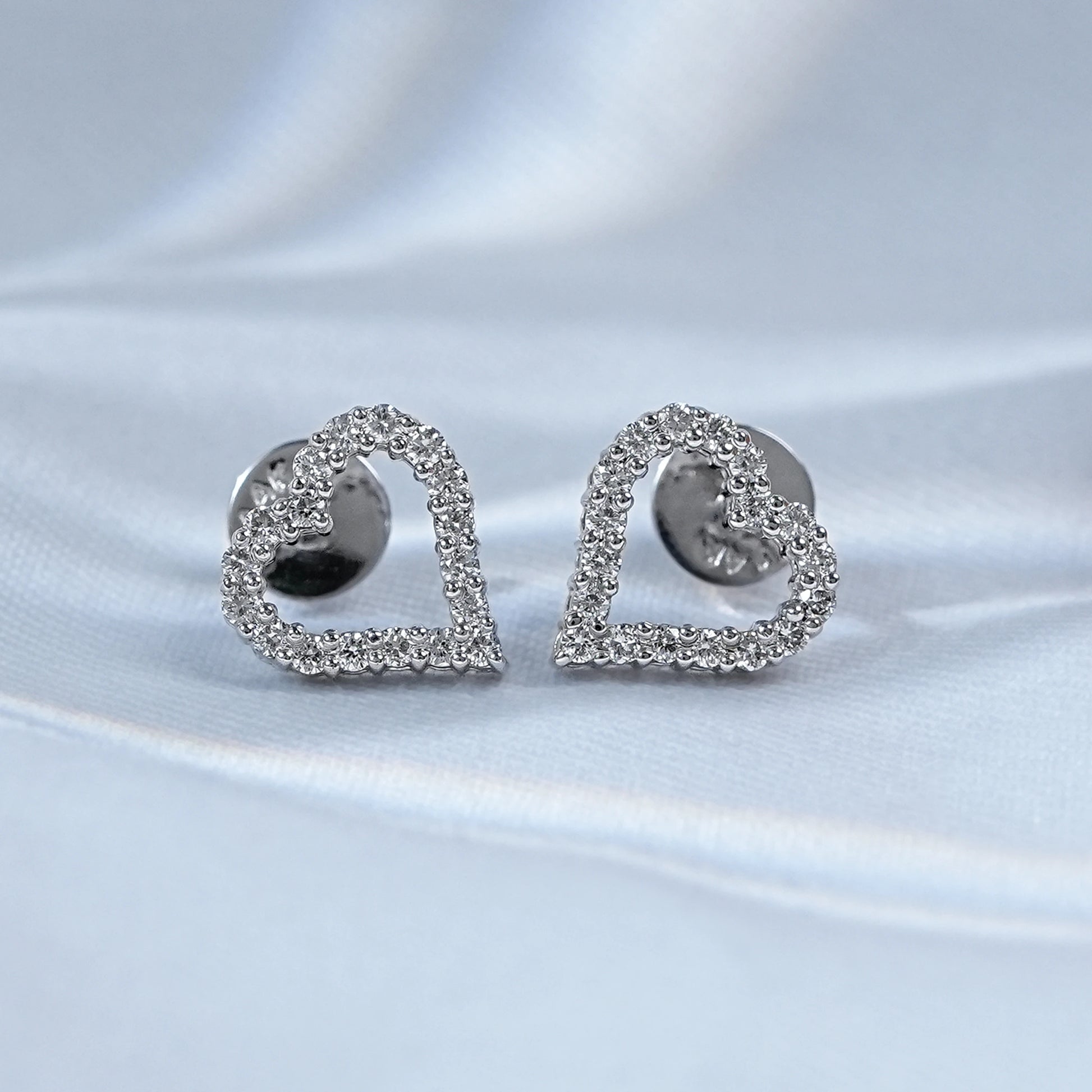 The Open Heart Round Lab Diamond Stud Earrings showcase a graceful heart design with a radiant round lab-grown diamond at the center, blending elegance and love in a perfect symbol of affection.