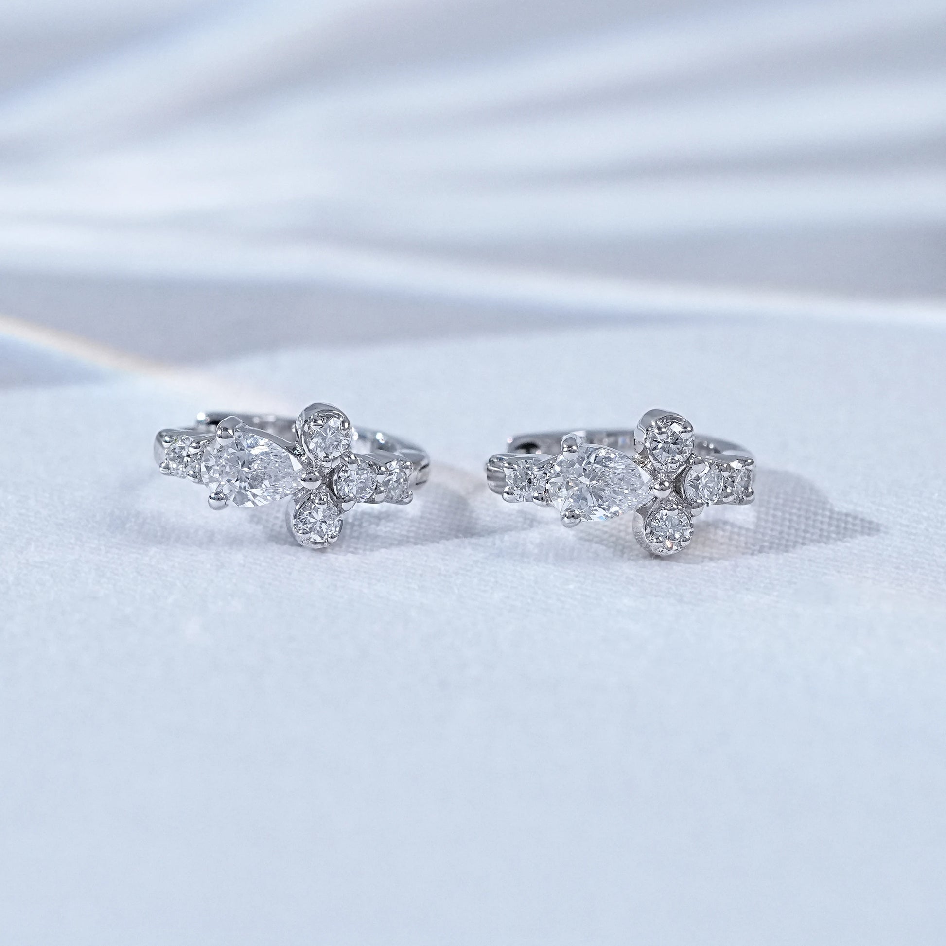 A combination of pear and round lab diamonds, these hoops deliver timeless sparkle, perfect for both everyday wear and special occasions.