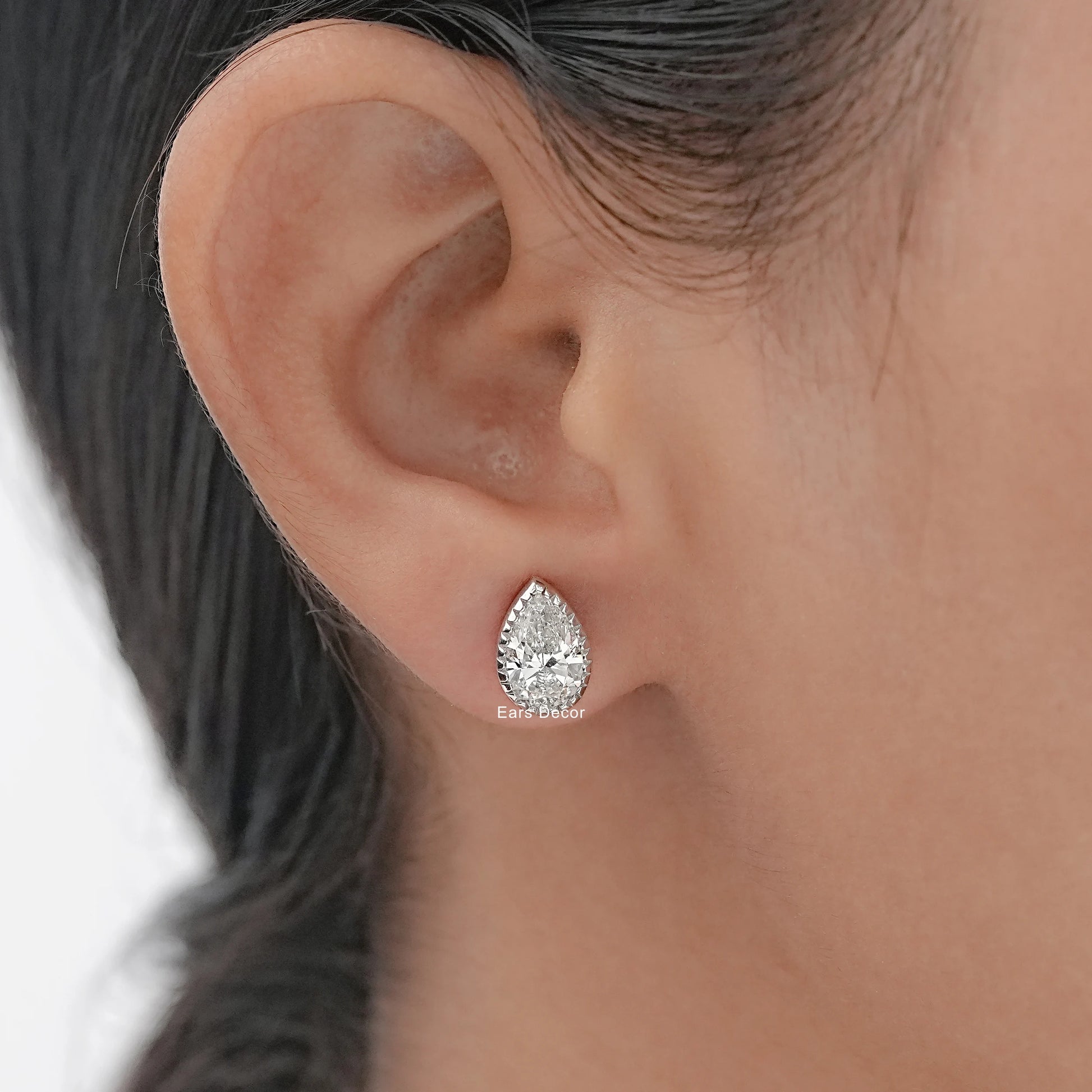 Pear Shape Milgrain Set Stud