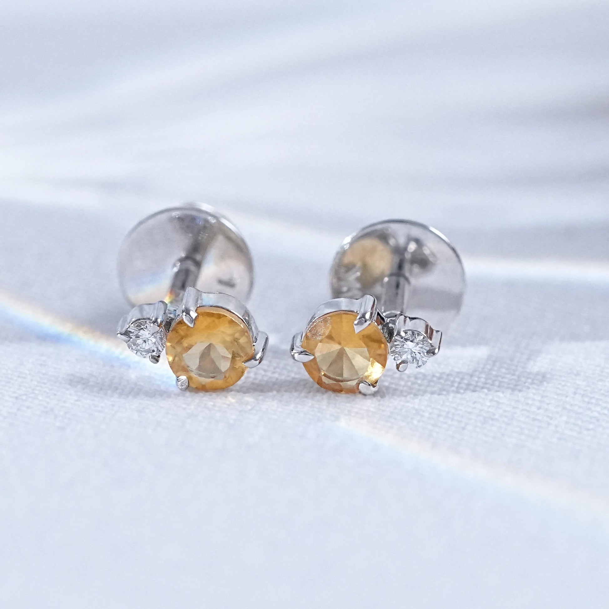 Elegant stud earrings showcasing vibrant round-cut citrine gemstones and sparkling lab-grown diamonds, set in luminous 14K white gold for a timeless touch.