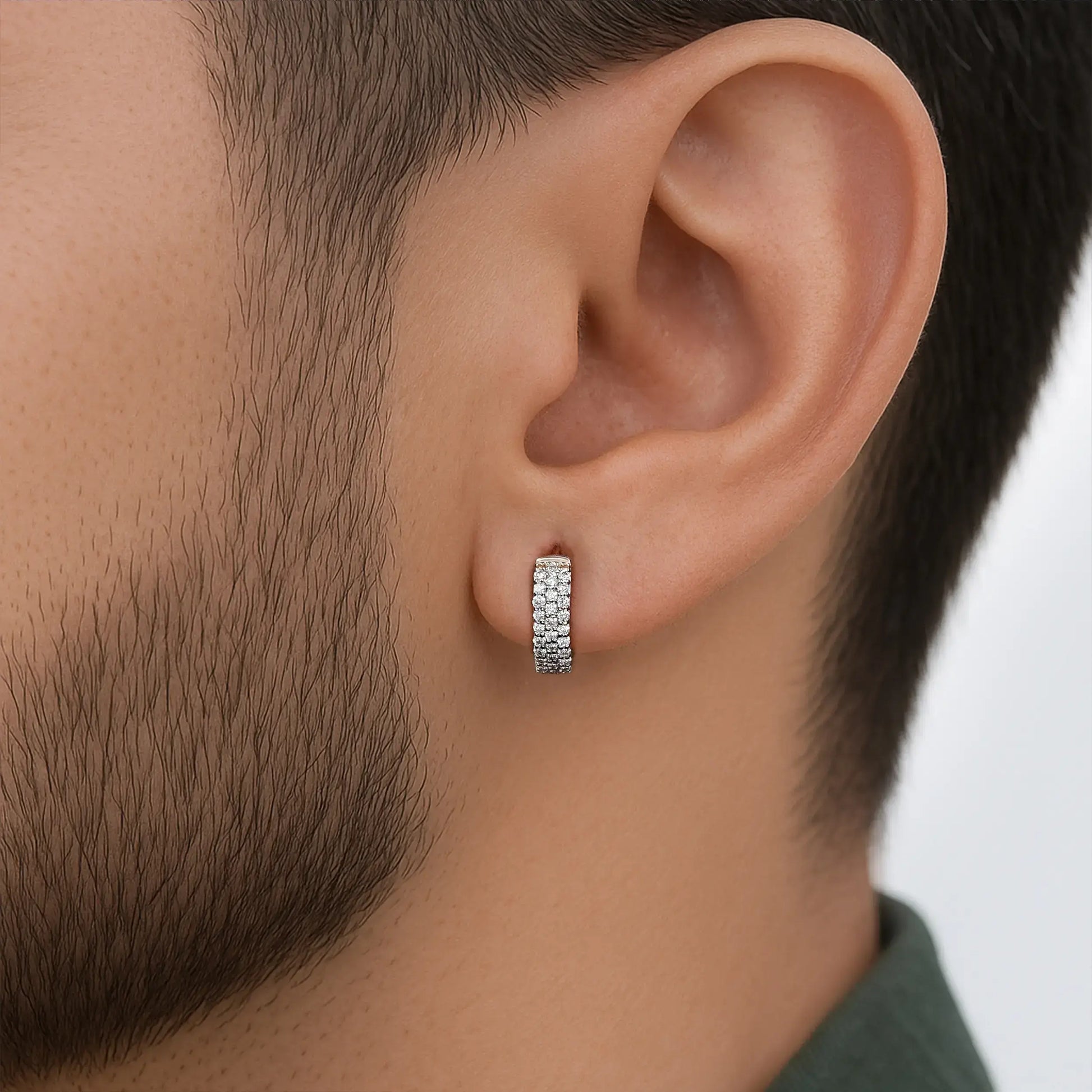 Elevate your style with this Men’s Round Diamond Pavé Hoop Earring, featuring brilliant round-cut diamonds in a sleek pavé setting for a refined, modern look.