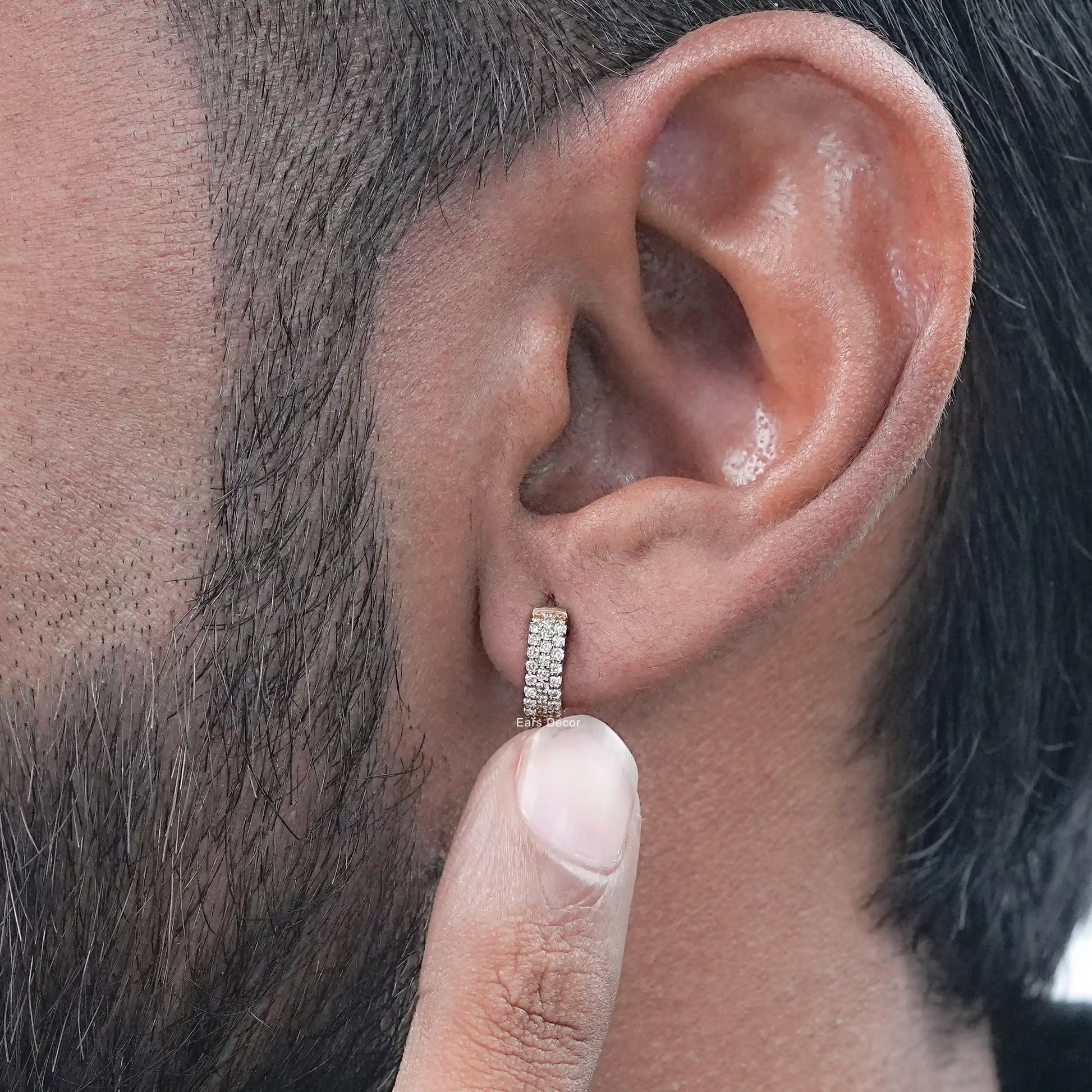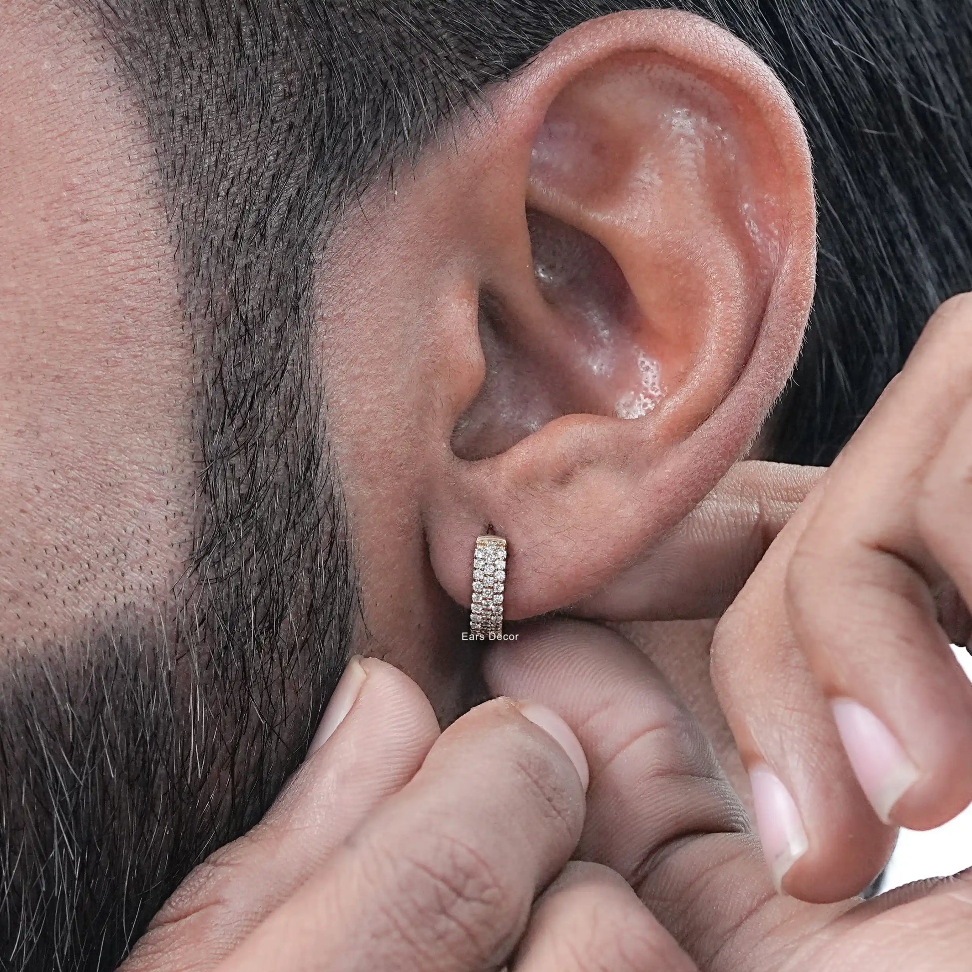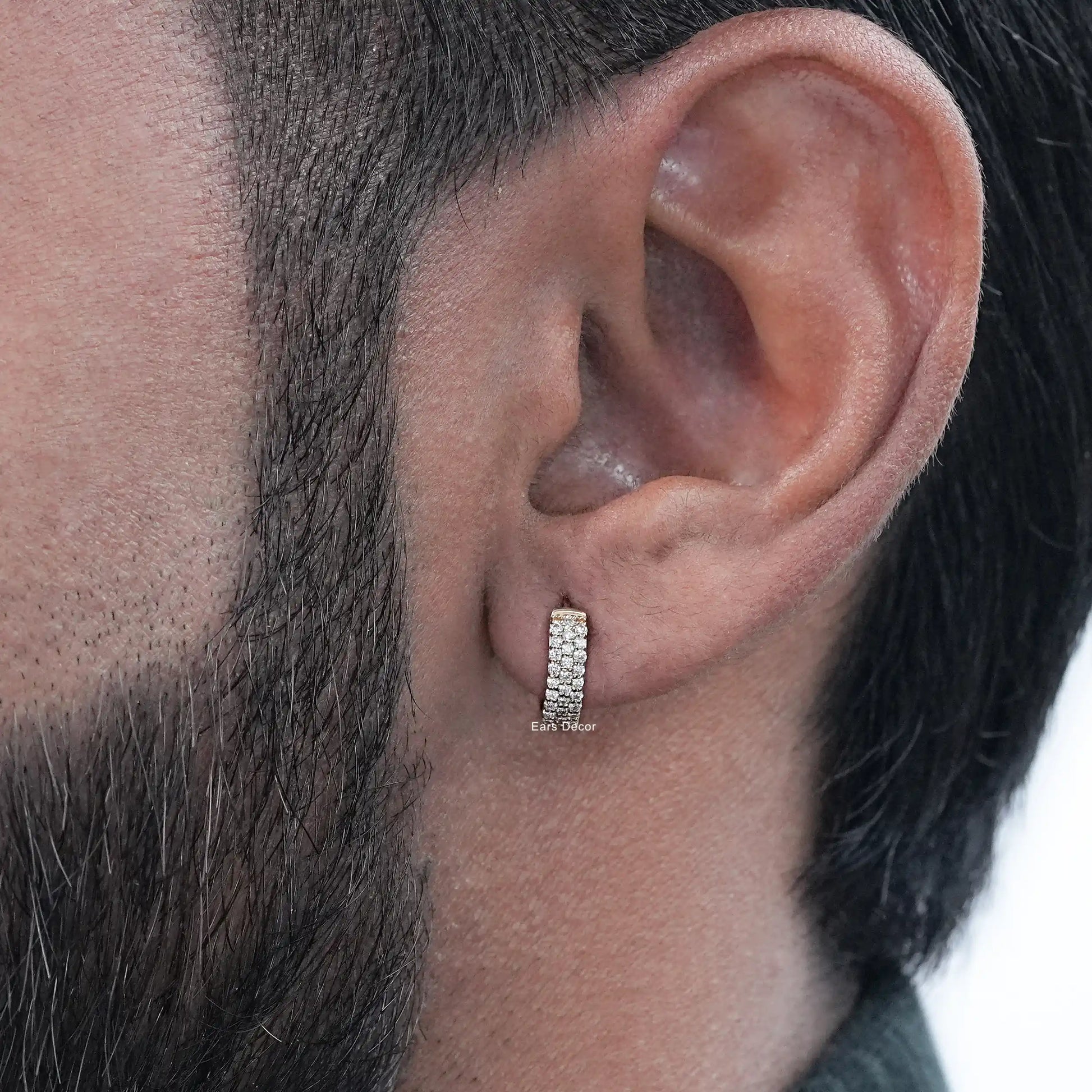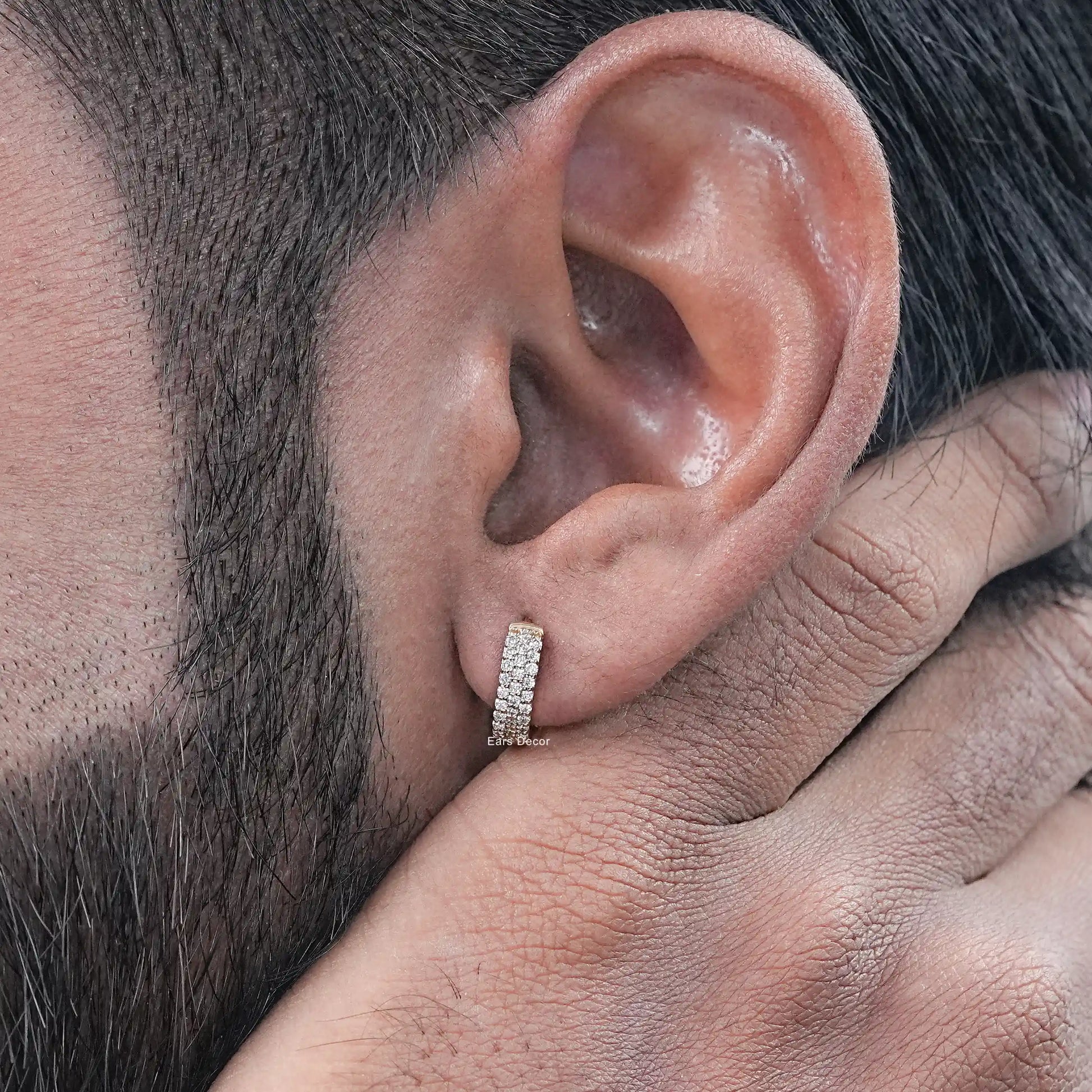 Round Lab Diamond Pave Set Men's Hoop Earring