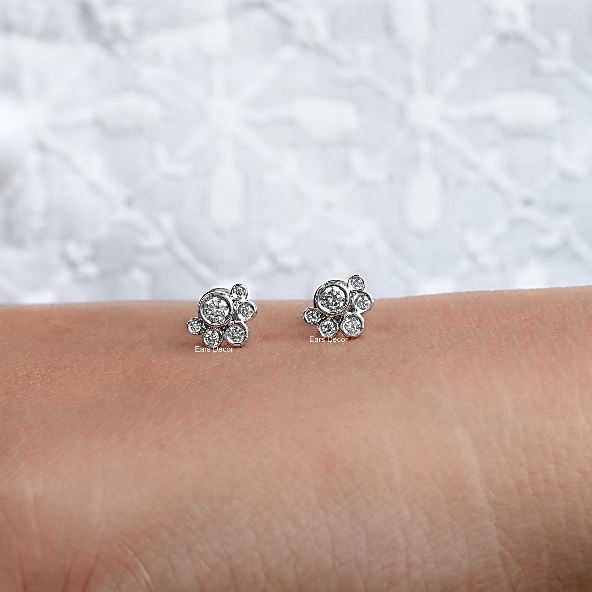 Adorable Round Lab Diamond Paw Earrings in a sleek bezel setting, blending sparkling elegance with a playful, pet-inspired design.
