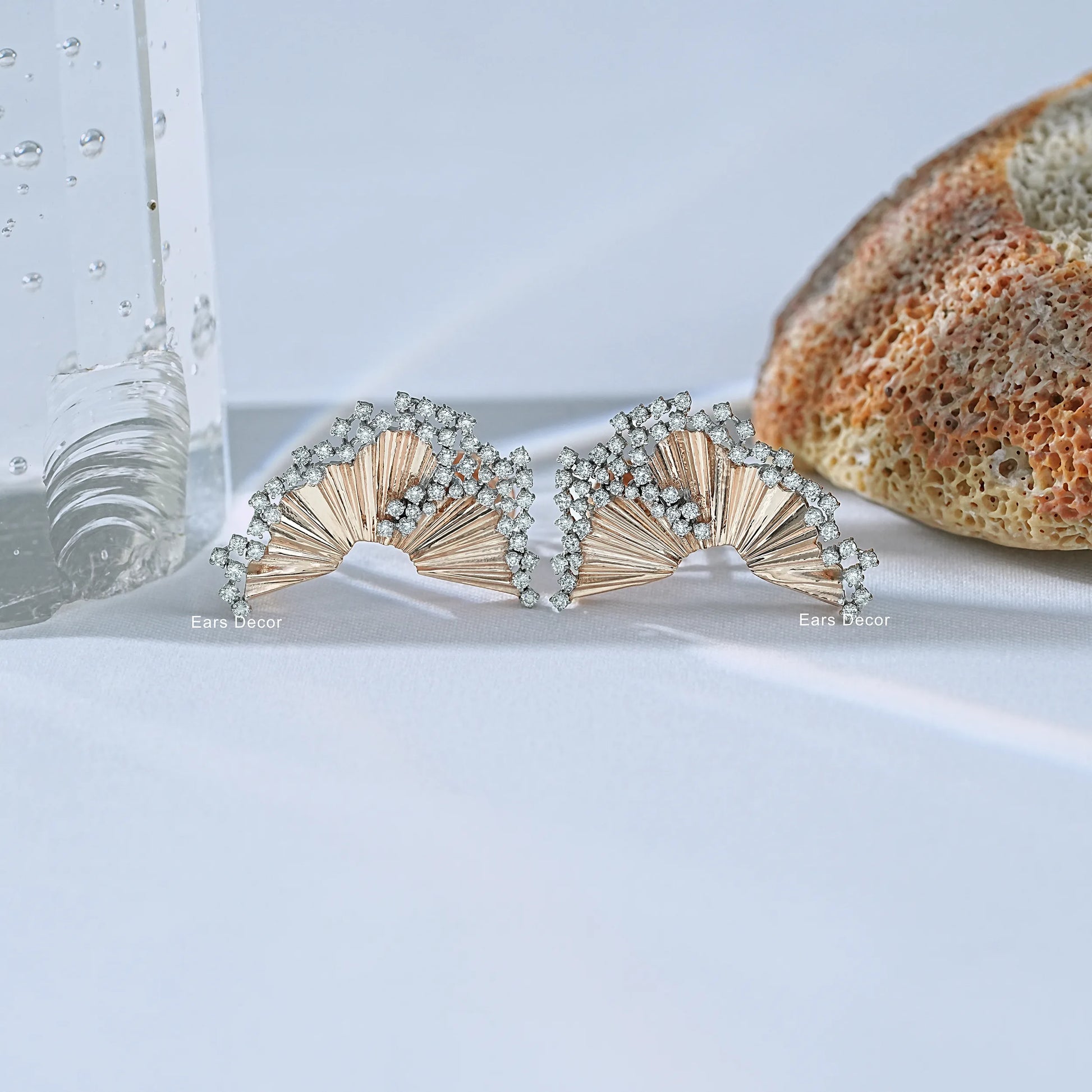 Round Cut Lab Diamond Fan Shaped Stud Earring.