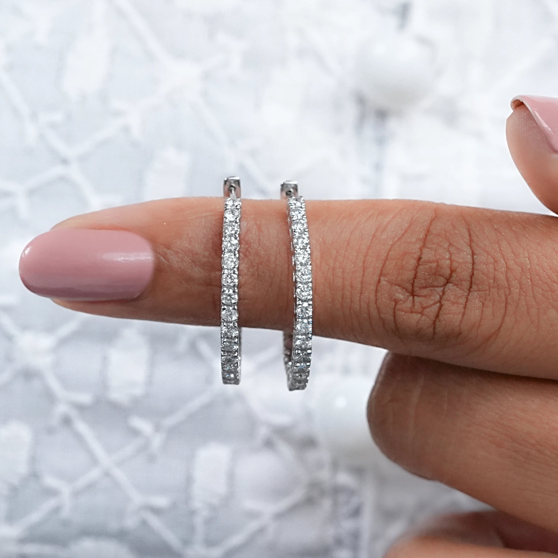 Minimalist In and Out Round Lab Diamond Hoop Earrings, crafted in white gold. These earrings feature a secure lever-back closure for a comfortable and safe fit.