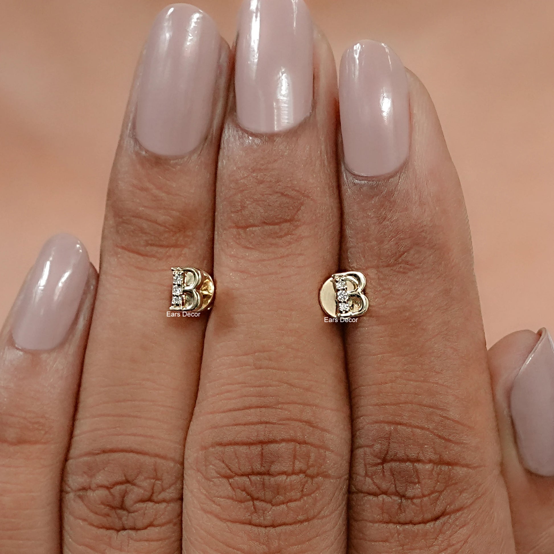 Personalized Round Lab-Grown Diamond Alphabet Letter Stud Earrings, combining sparkle and style for a meaningful everyday accessory.