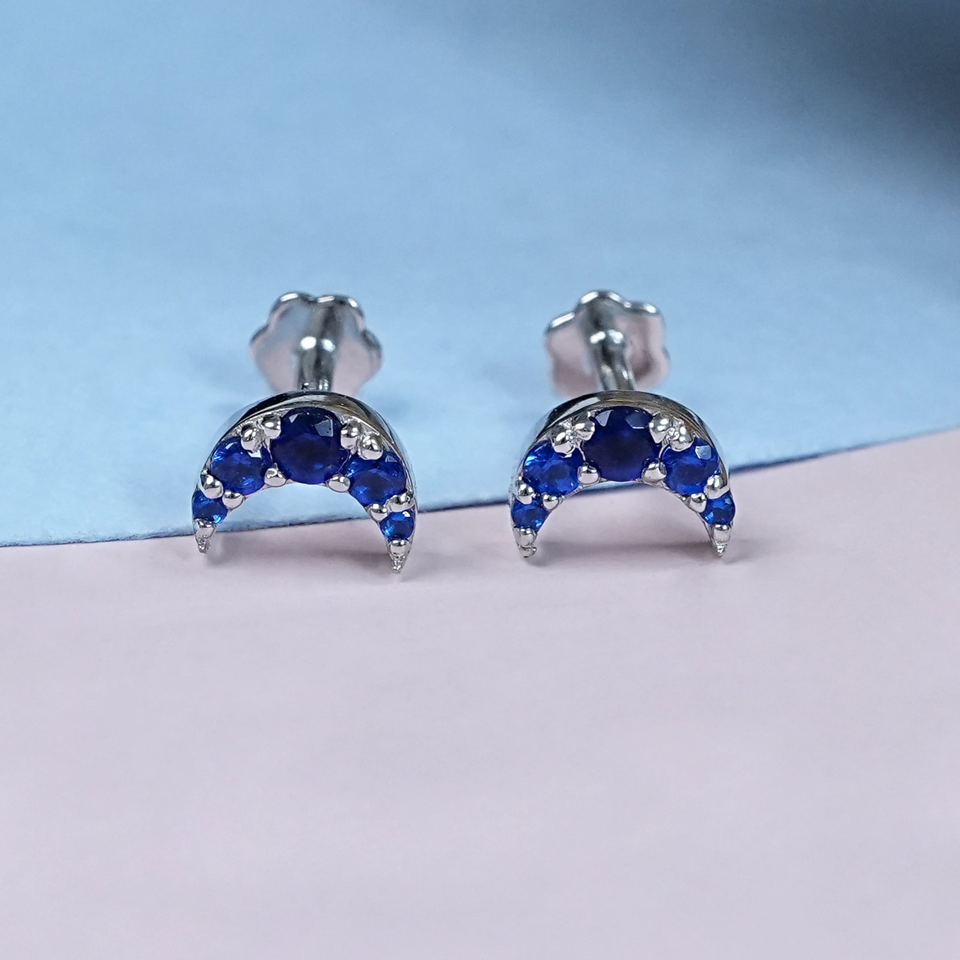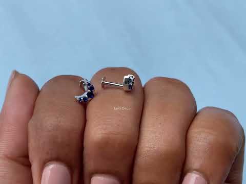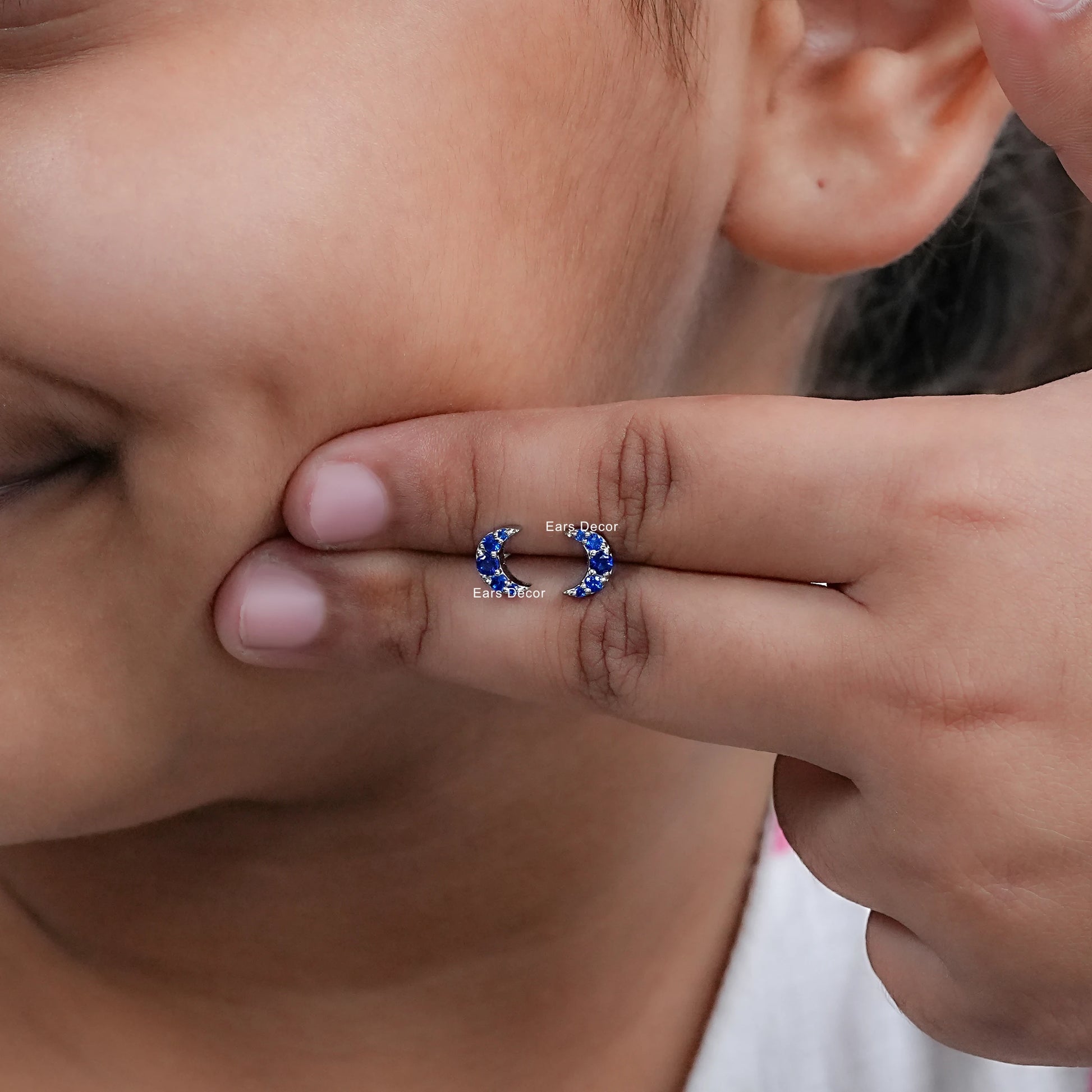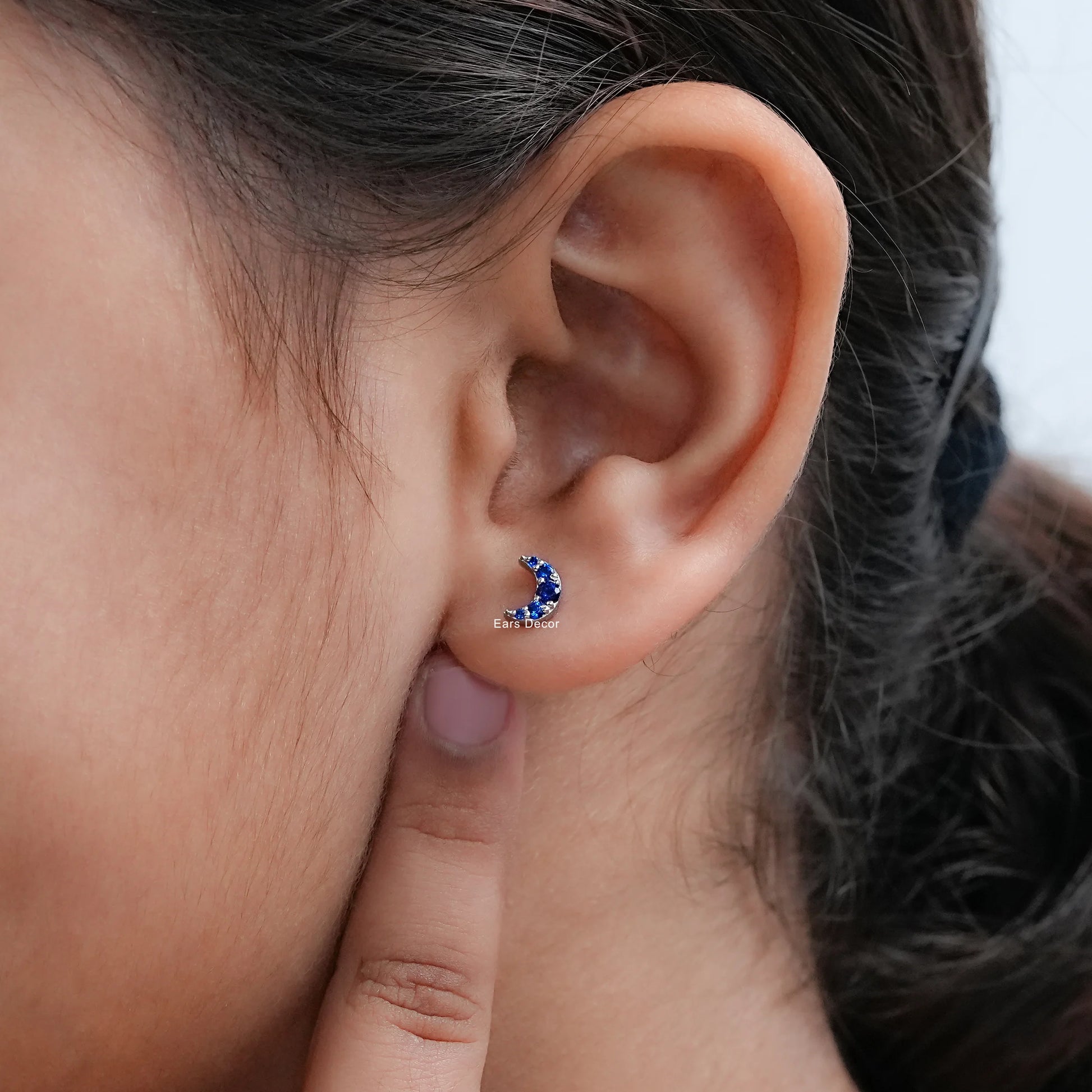 Embrace celestial elegance with these Round Sapphire Crescent Moon Dainty Studs. Featuring vibrant sapphire gemstones in a delicate crescent moon design, they add a touch of whimsy and sophistication to your look.
