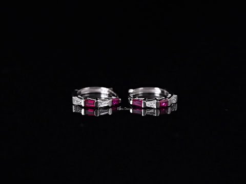 Ruby Tapered Baguette And Diamond Hoop Earrings
